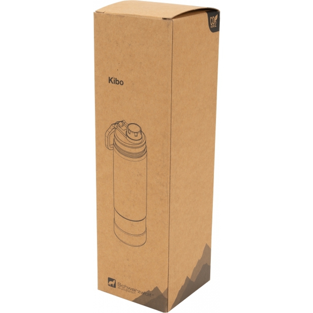 W dolnej części butelki znajduje się silikonowy pasek z logo Schwarzwolf, podkreślający jej markowy charakter. Zapakowana w eleganckie pudełko upominkowe, butelka KIBO jest idealnym prezentem okolicznościowym lub dobrej jakości gadżetem reklamowym dla wymagających klientów i klientów VIP. Z pojemnością 800 ml, zapewnia odpowiednią ilość napoju w ciągu dnia bez konieczności ciągłego jej uzupełniania.