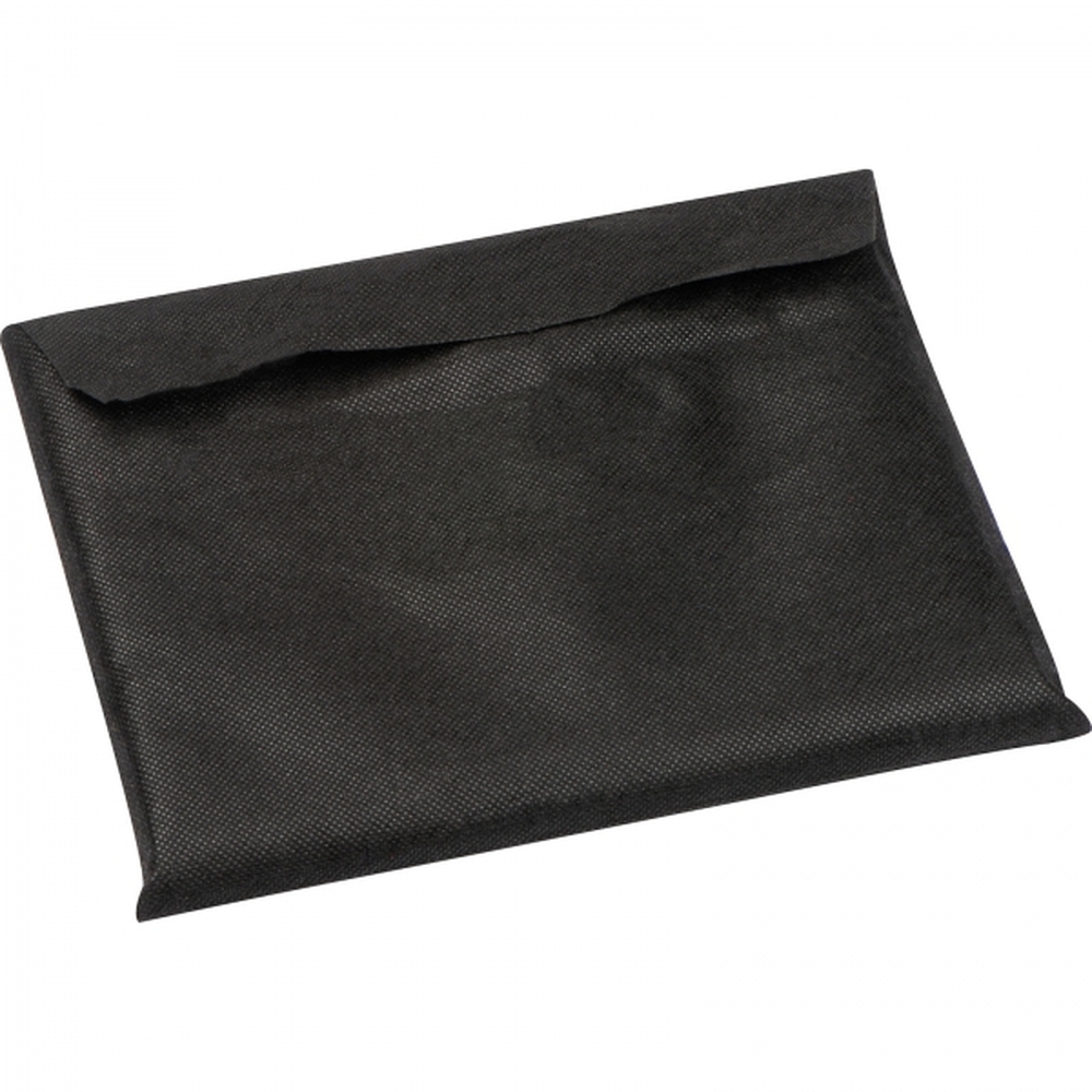Folder A5 z materiału imitującego skórę. Posiada kieszenie na wizytówki, telefon i szlufki na długopisy oraz notes w linie z małym kalendarzem. Zamykany na zamek błyskawiczny.