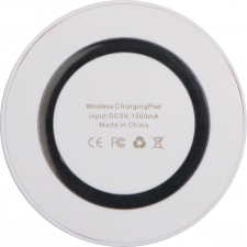 Plastikowa ładowarka indukcyjna umożliwiająca ładowanie smartfona bez użycia kabla. Ładowarka umożliwia ładowanie urządzeń marek Samsung i Apple (od modelu iPhone 8).