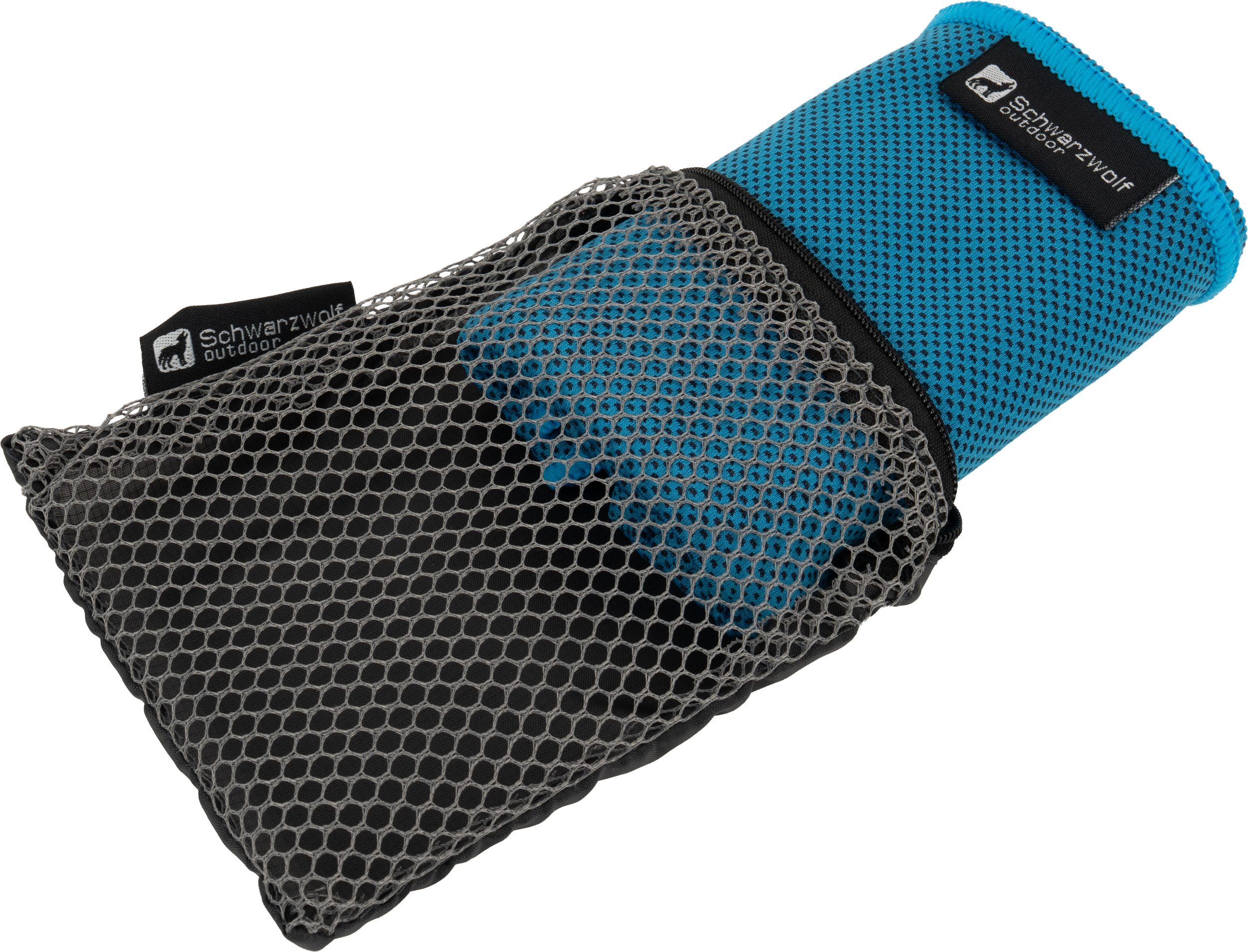 Ręcznik sportowy Schwarzowolf wykonany z szybkoschnącego materiału: poliester 55%, poliamid 45%. Pakowany w etui z siateczki - 14 x 10 x 1 cm.