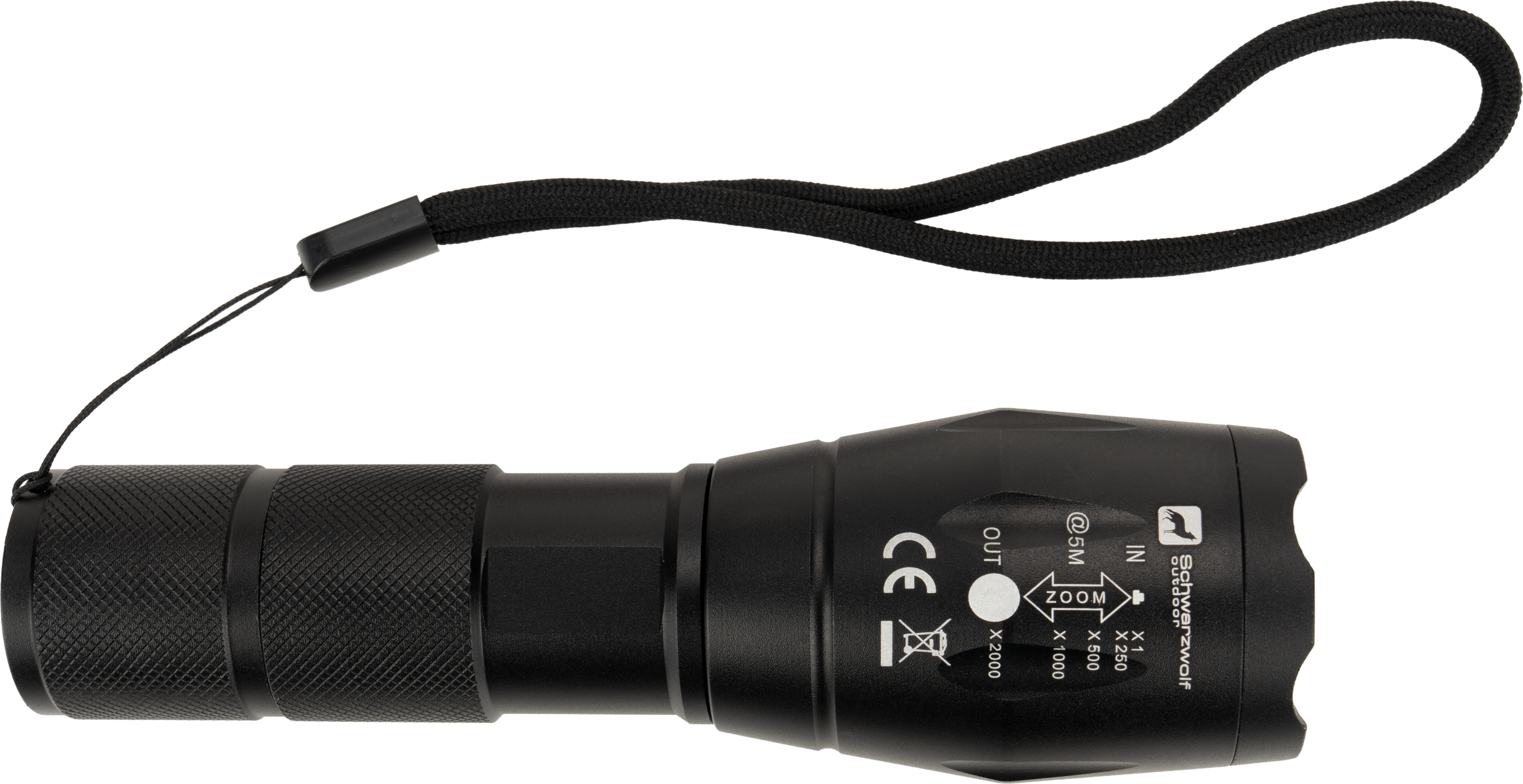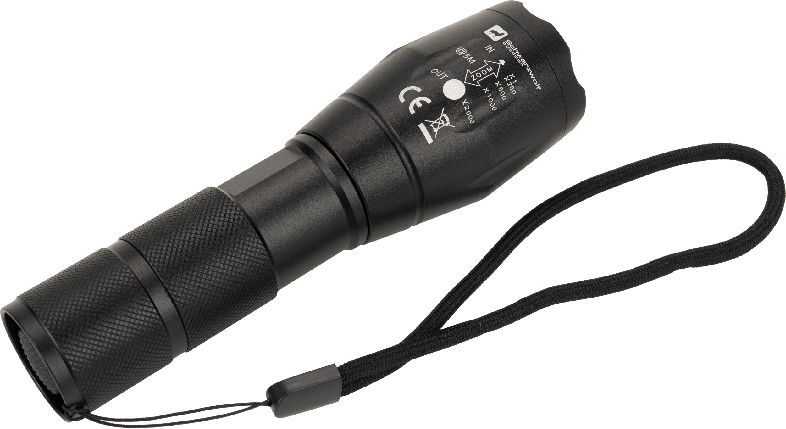 Latarka marki Schwarzwolf z paskiem na nadgarstek. Jasność: 260 lumenów. Baterie 3 x AAA w zestawie.