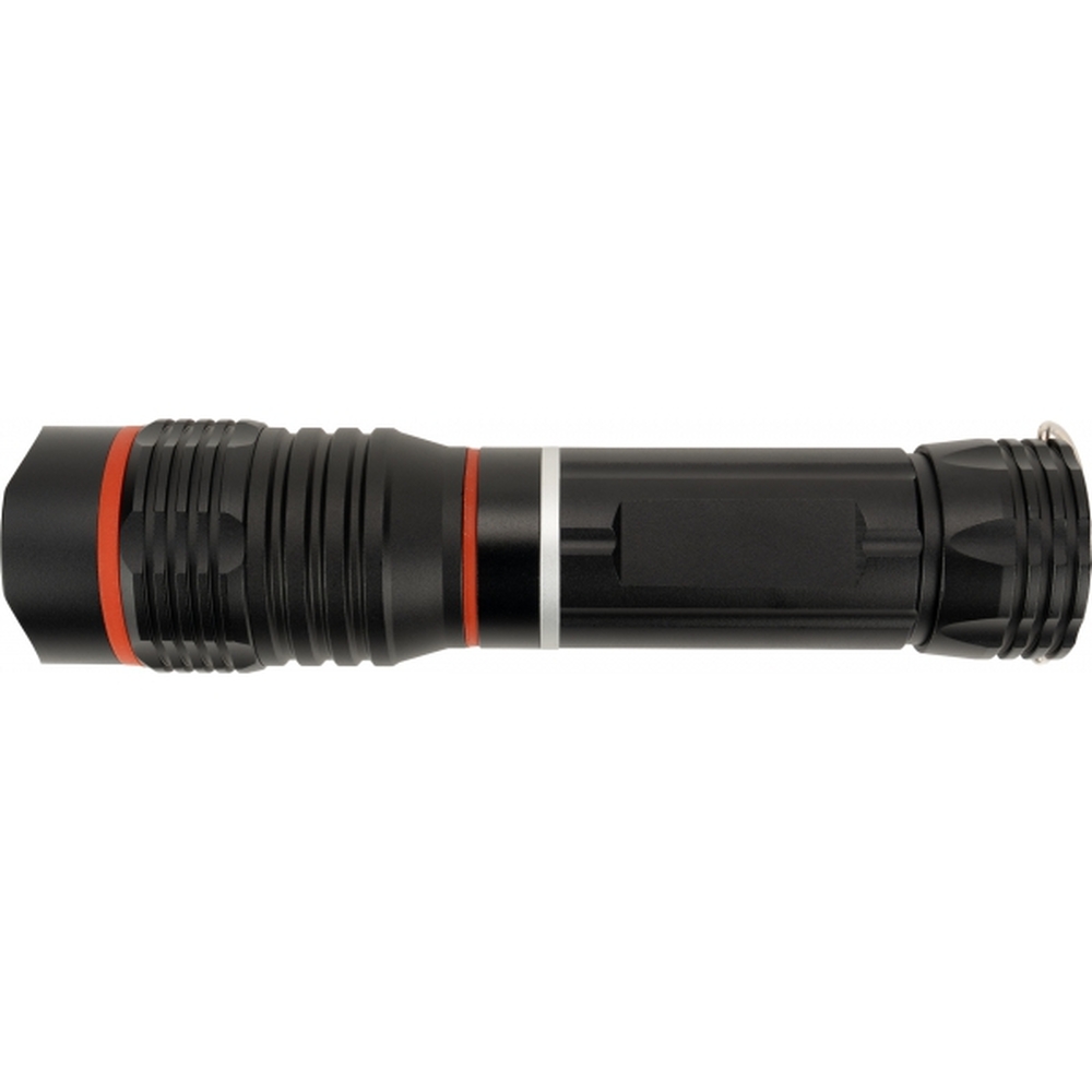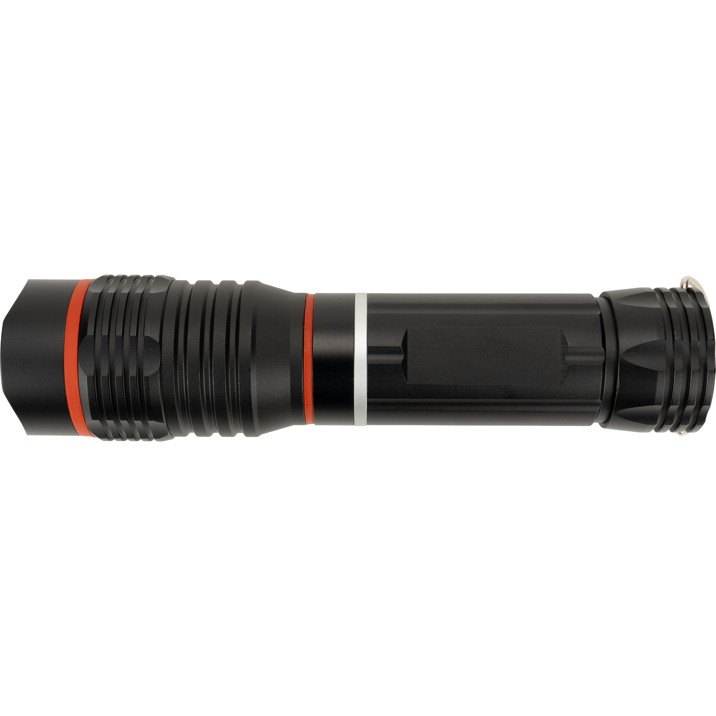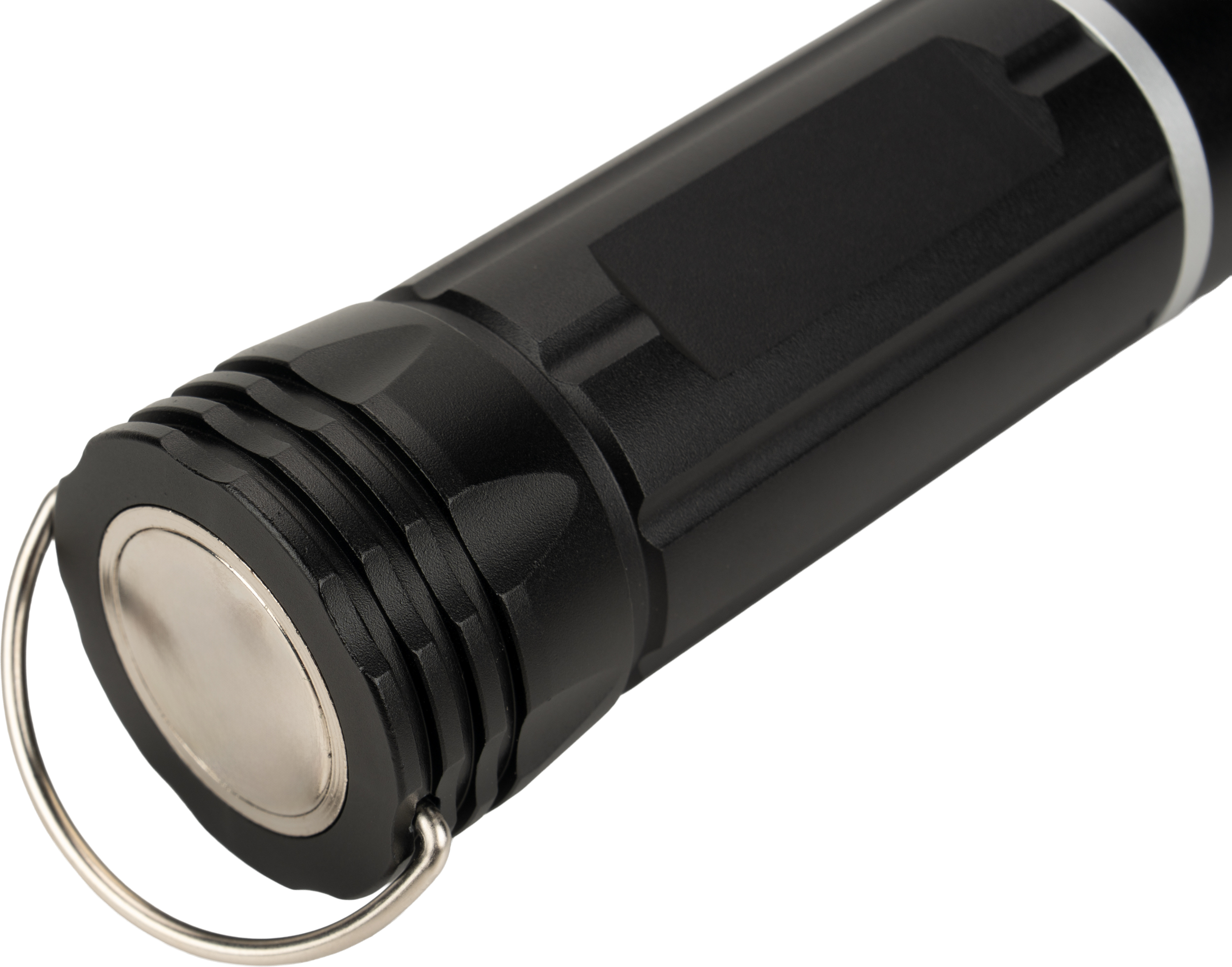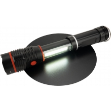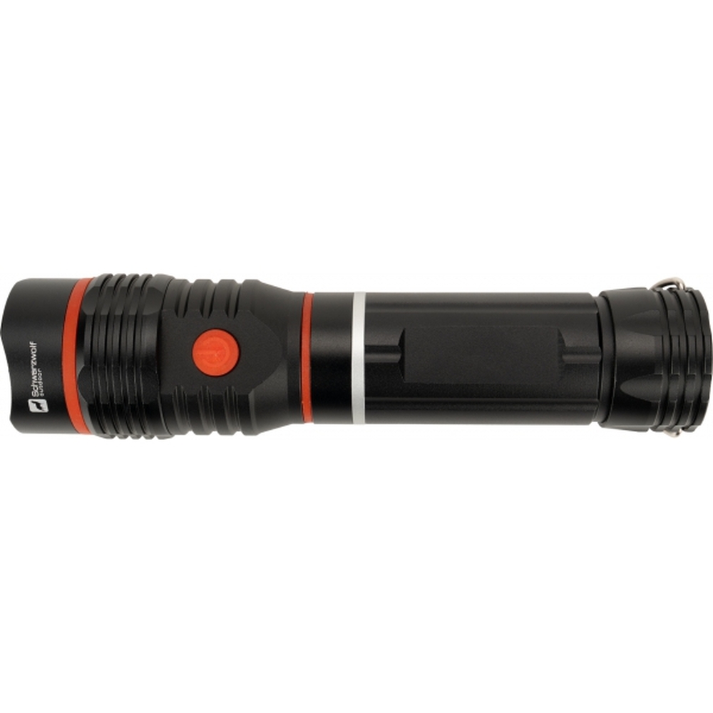 Latarka metalowa Schwarzwolf z diodą CREE XPE oraz intensywnie świecącą diodą COB w rozsuwanej części. Na końcówce latarki znajduje się magnes oraz haczyk do zawieszania. Bateria 4× AAA w zestawie. Jasność: CREE XPE: 130 lumenów; COB: 180 lumenów.