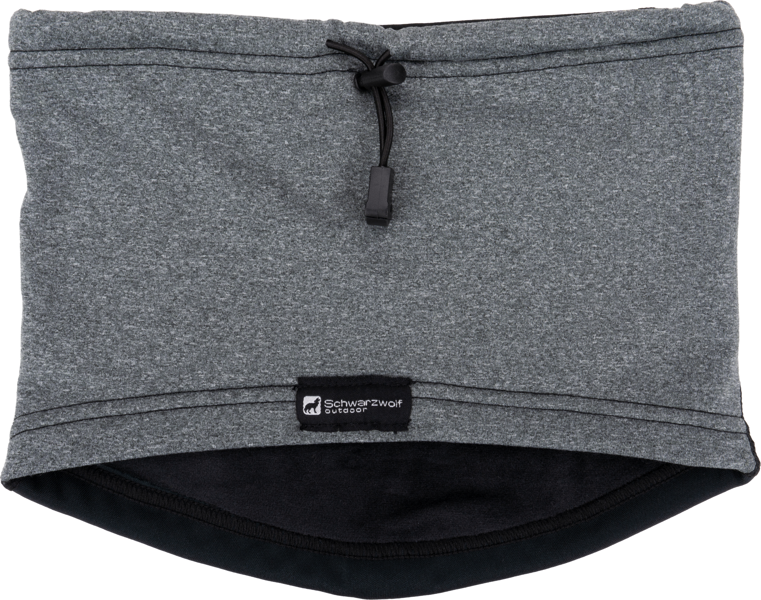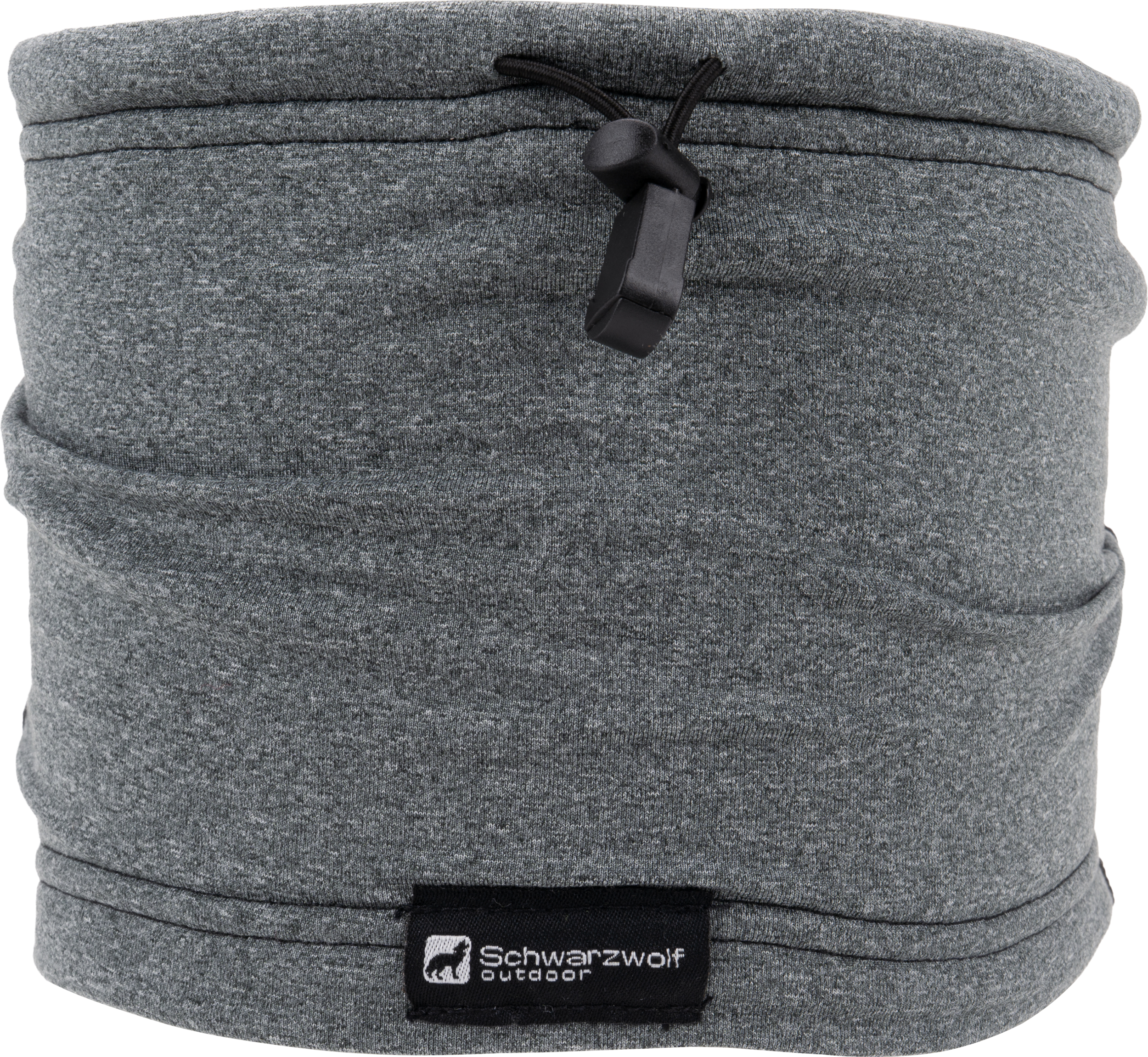 Wielofunkcyjna bandana idealna na zimową pogodę. Posiada gumkę ze ściągaczem, dzięki której można dopasować ją do szyi lub nosić jako czapkę. Wykonana z czarnego, elastycznego polaru (92% poliester, 8% spandex) oraz szarego (100% poliester).