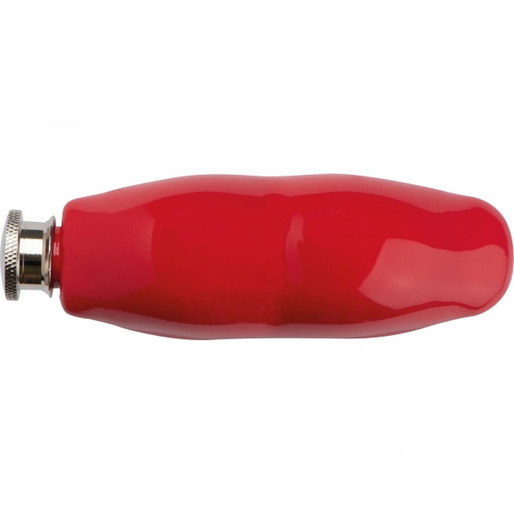 Piersiówka w kształcie ust, ze stali nierdzewnej, pojemność 178 ml.