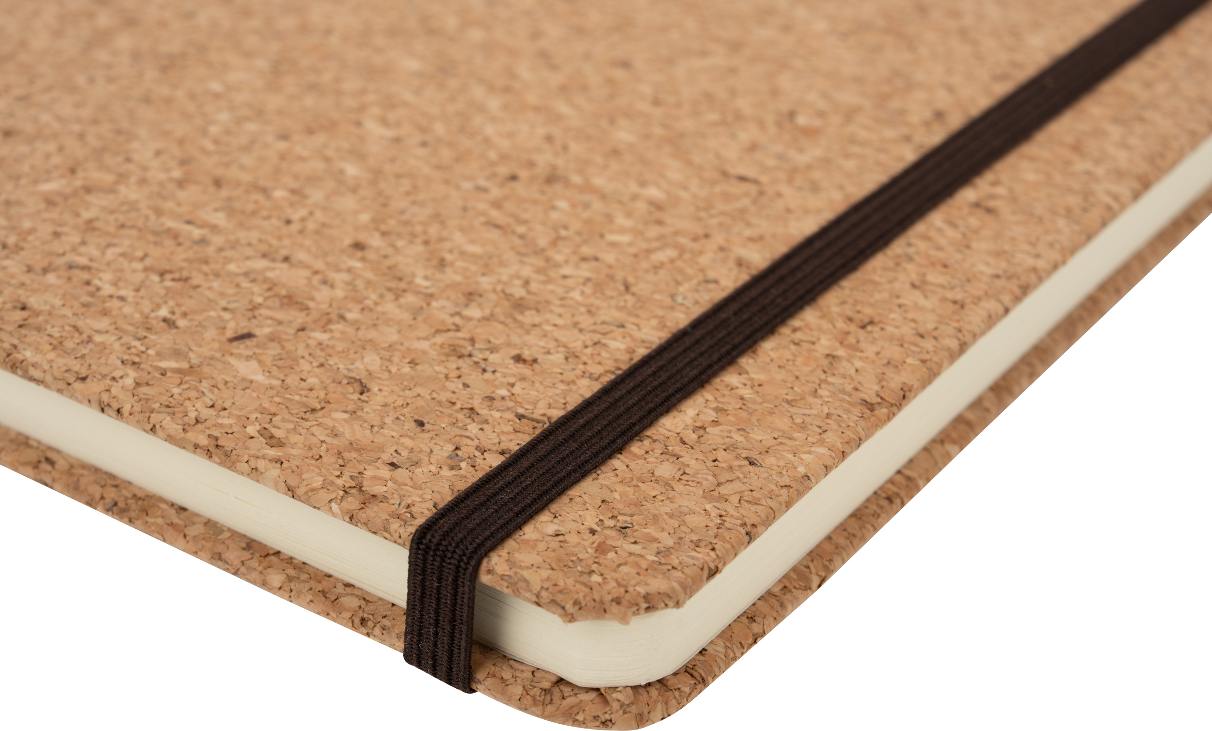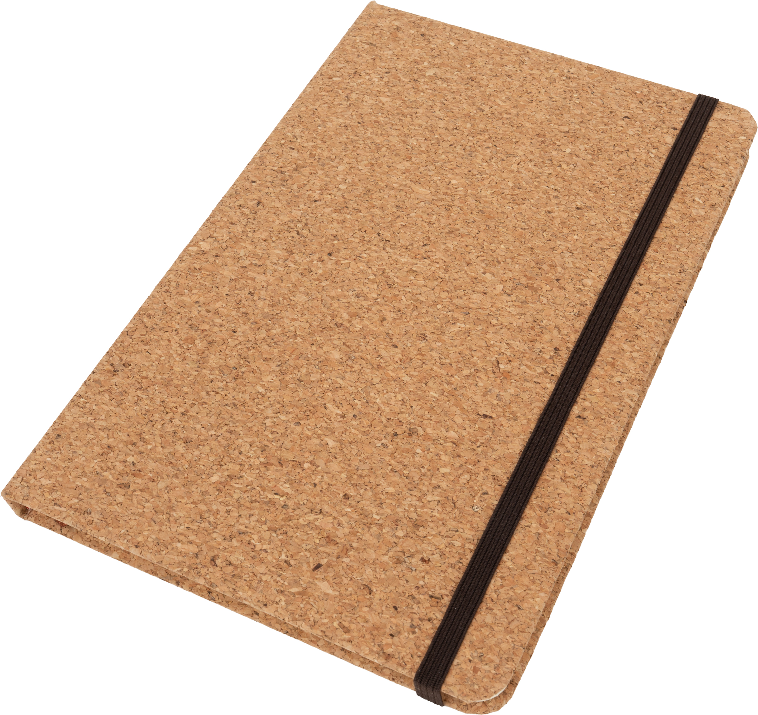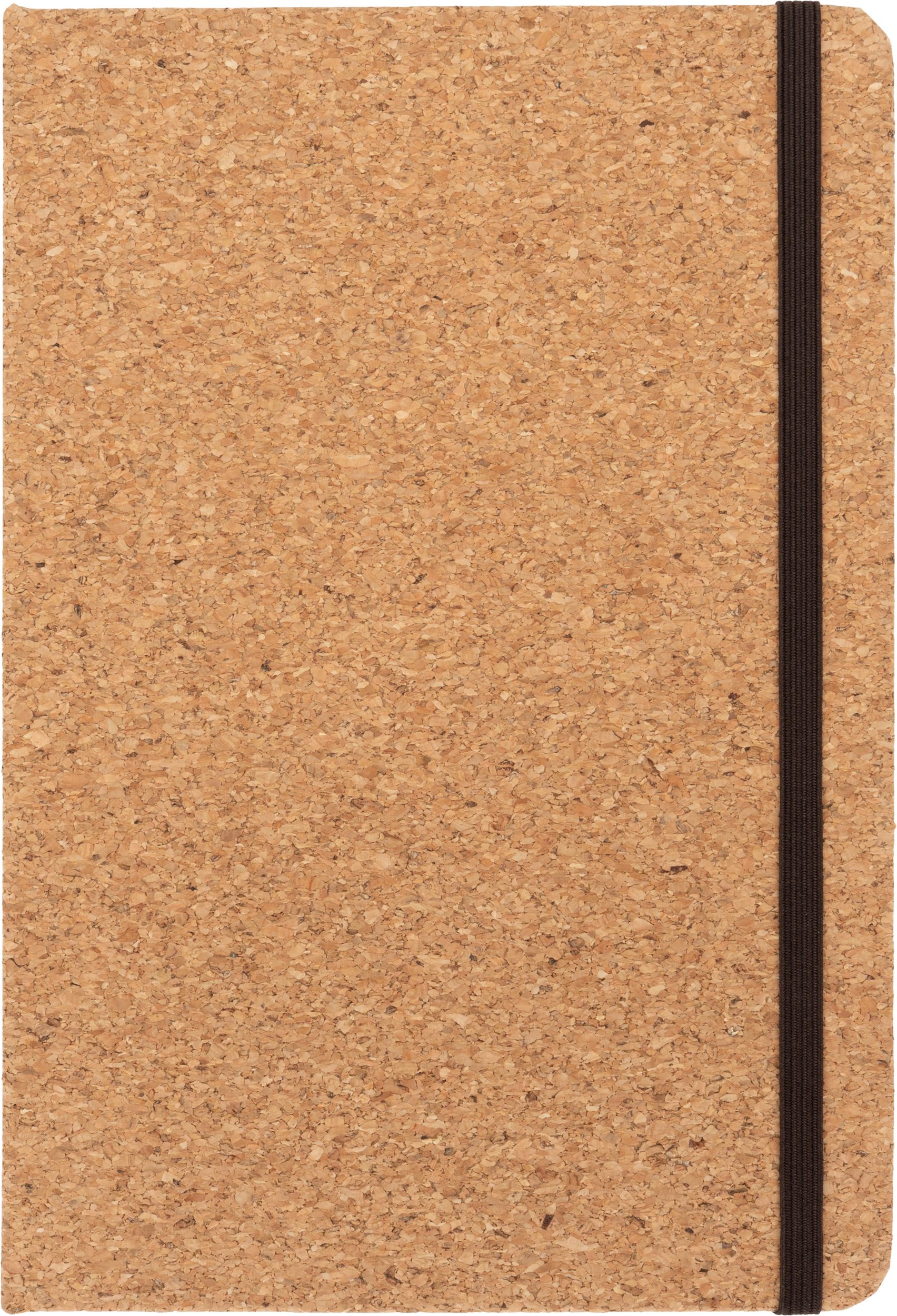 Notes format A5 (160 stron w linie) z okładką wykonaną z korka oraz zakładką i gumką do zamykania.