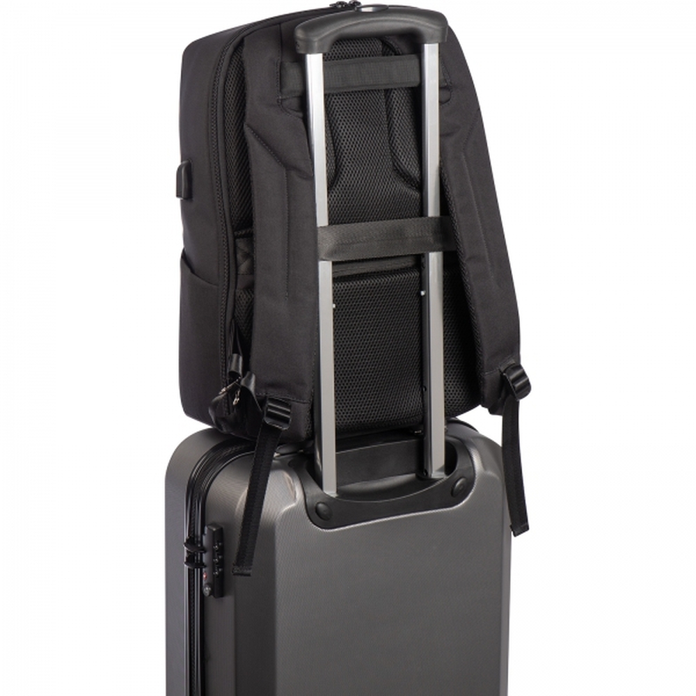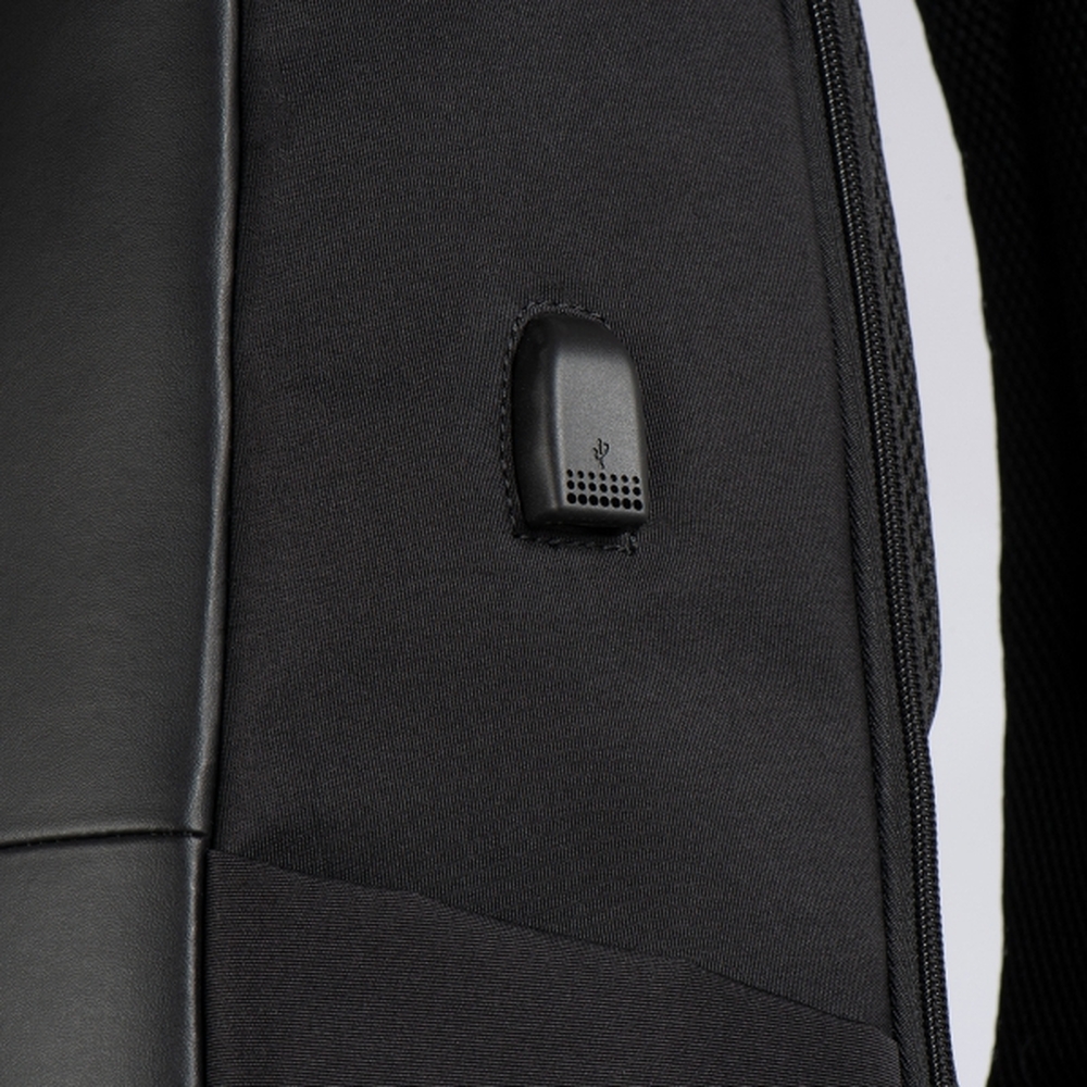 Wysokiej jakości, wodoodporny plecak, wykonany w 65% z nylonu i w 35% z poliuretanu. Posiada port USB oraz wzmacniane, oddychające szelki. Plecak jest bardzo pojemny, ma także miejsce na laptopa do 15,6".