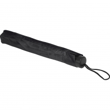 Ręcznie otwierany składany parasol kieszonkowy wykonany z poliestru, z elementami metalowymi i plastikowymi, z pokrowcem ochronnym.
