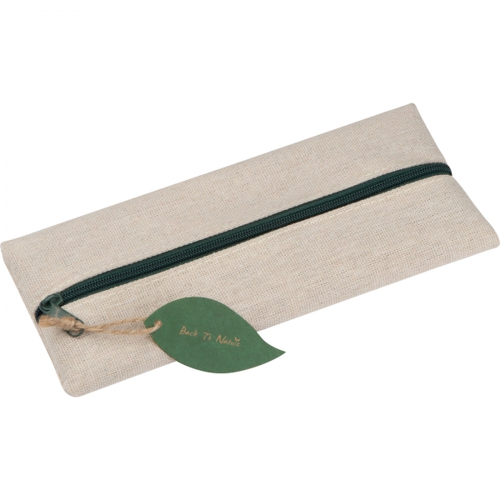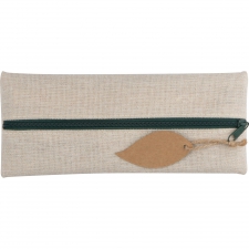Przyjazny środowisku zestaw do pisania. Zwiera drewnianą linijkę, gumkę do ścierania, drewnianą temperówkę, ołówek i tekturowy długopis. Całość zapakowana w przyjazne środowisku bawełniane etui na zamek błyskawiczny.