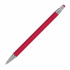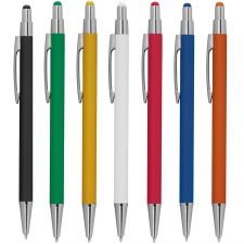 Długopis z aluminium z gumowaną powierzchnią. Posiada wkład piszący na niebiesko i końcówkę do obsługi ekranów dotykowych.