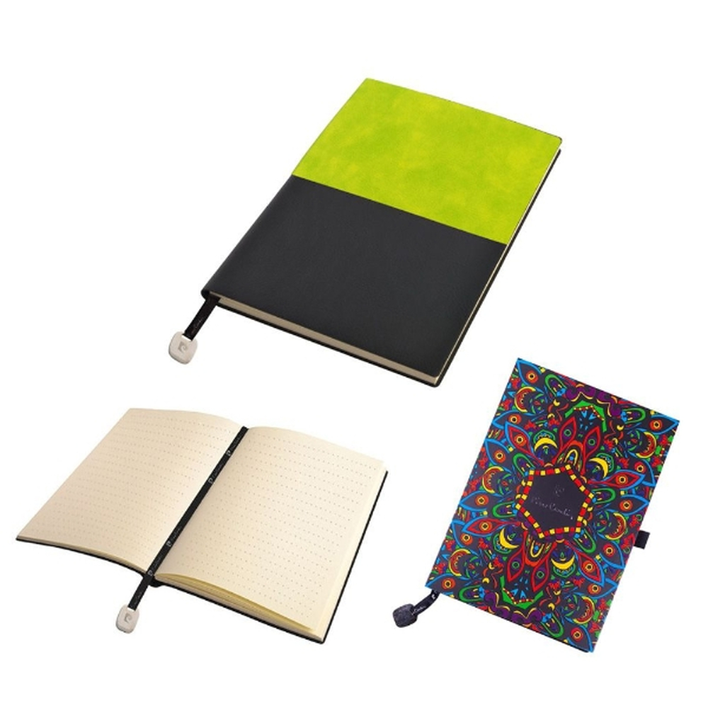 Luksusowy, dwukolorowy notes o formacie A5 z okładką imitującą skórę. Posiada 160 stron w wykropkowane linie, gramatura 80 g/m2 oraz zakładkę z metalowym elementem. Z tyłu na okładce tłoczone logo Pierre Cardin. Zapakowany w eleganckie pudełko prezentowe z certyfikatem autentyczności Pierre Cardin.