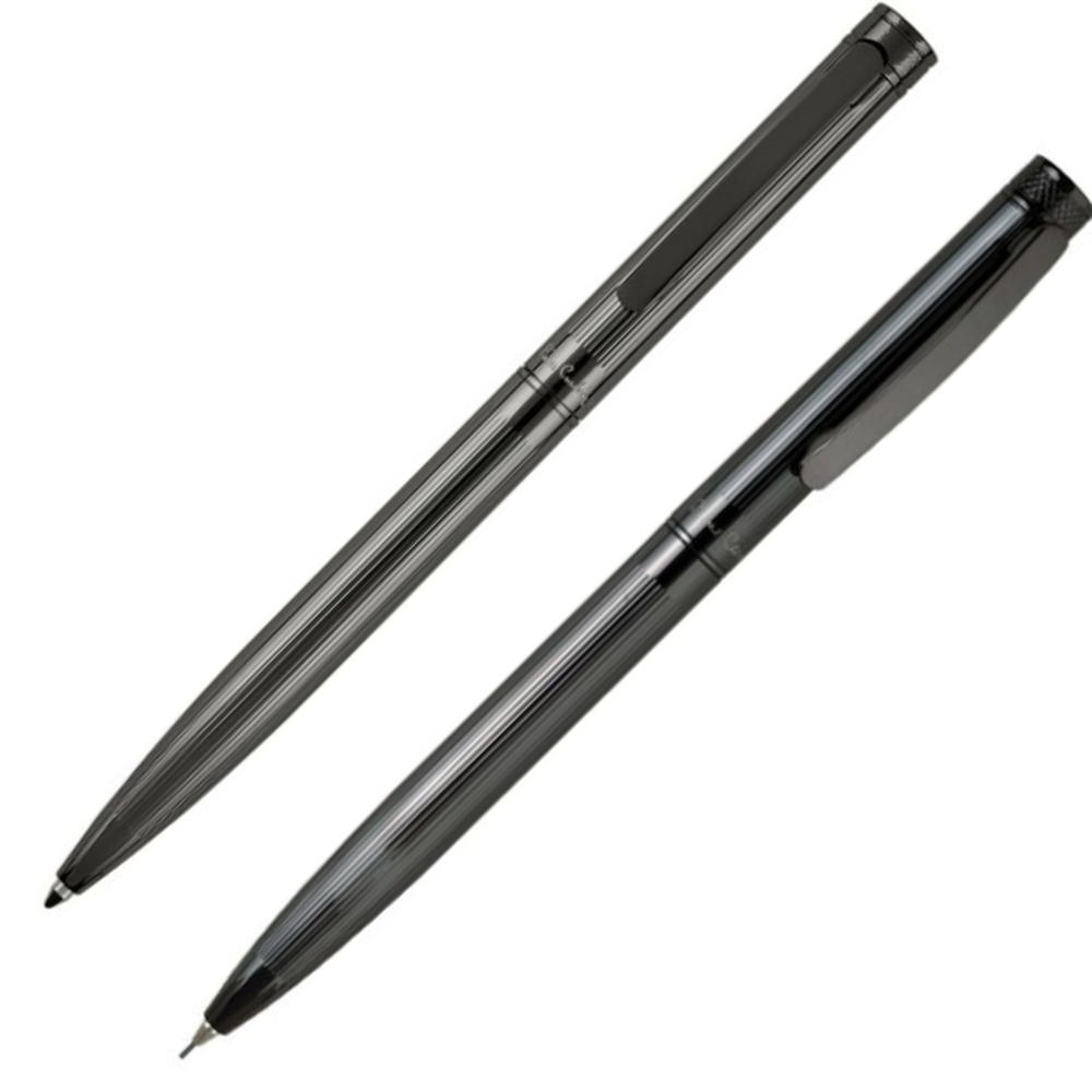 Najwyższej jakości zestaw piśmienniczy składający się z długopisu piszącego na niebiesko (1 mm) i ołówka (grafit 0,5 mm) pochodzących z kolekcji RENEE. Przybory piśmienne wykonane z metalu z chromowanymi elementami. Zestaw zapakowany w eleganckie pudełko prezentowe z certyfikatem autentyczności Pierre Cardin.