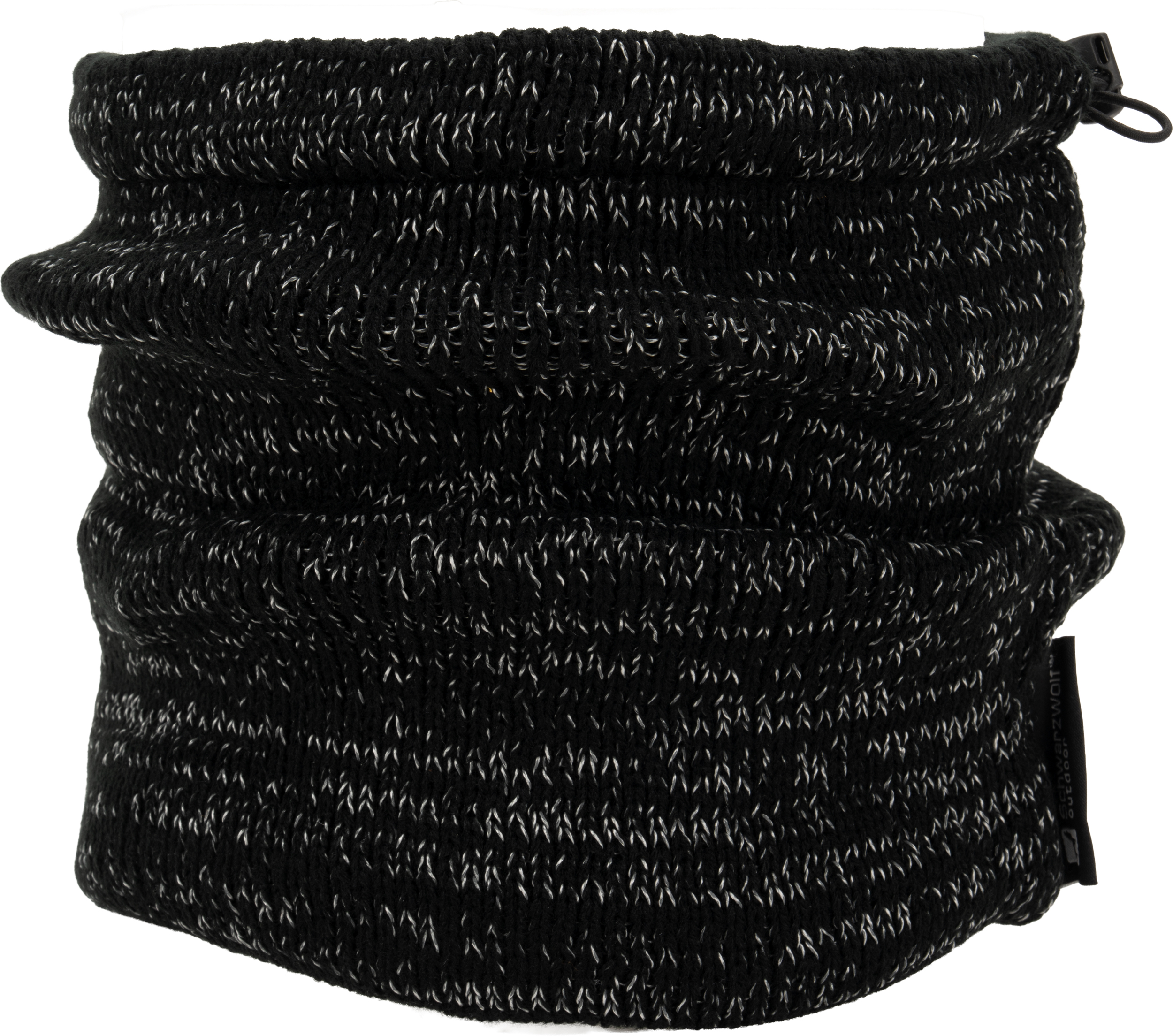 Dzianinowa, wielofunkcyjna bandana Schwarzwolf 2w1, można jej używać także jako czapki. W kolorze czarnym, pikowana przędzą odblaskową. Nadaje się na zimę, posiada gumę do ściągania na szyi. Podszewka wykonana jest z bardzo miękkiego i przyjemnego materiału polarowego.