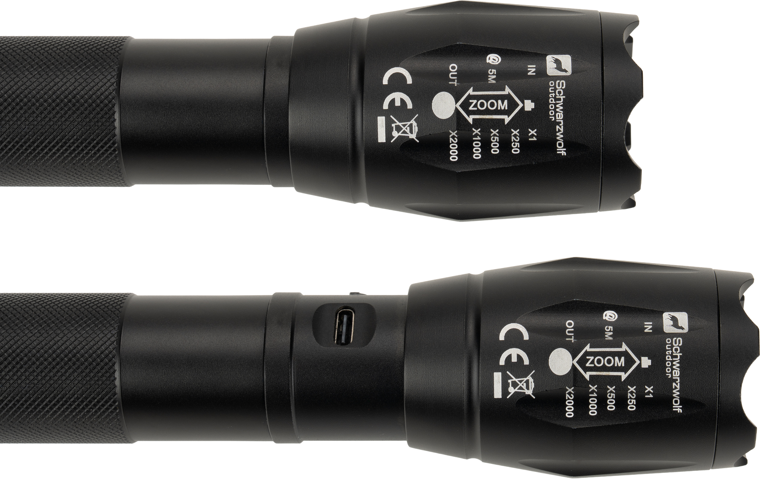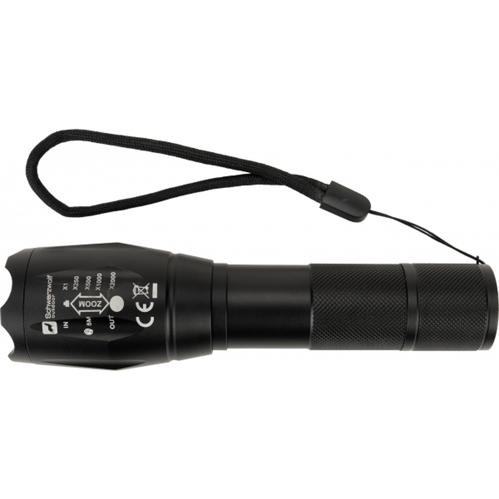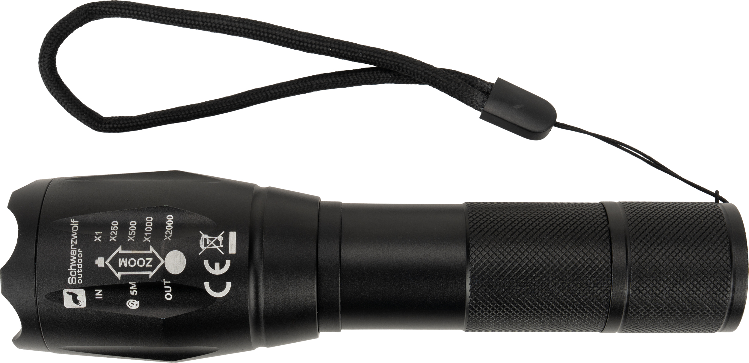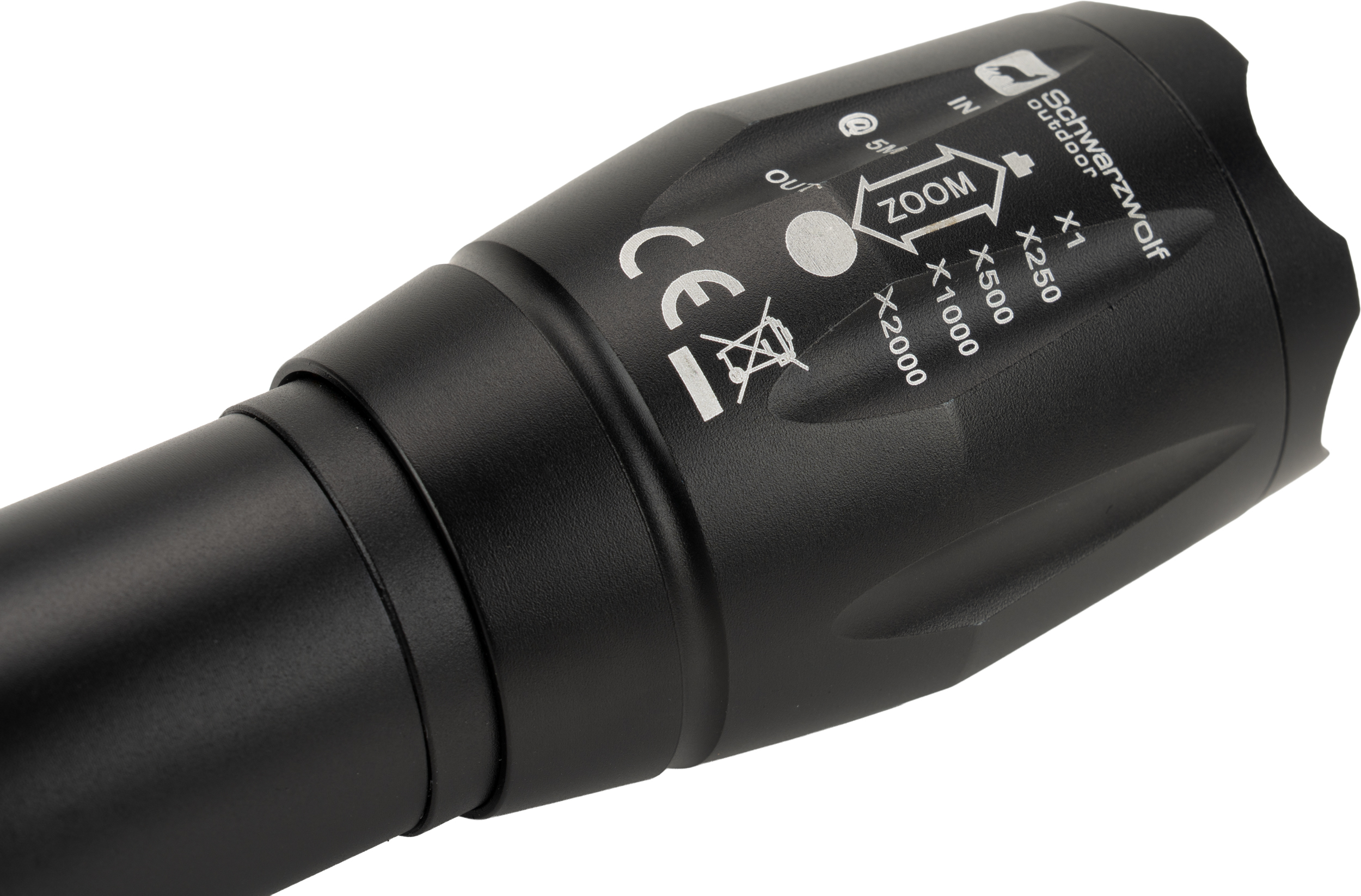 Latarka outdoorowa marki Schwarzwolf zakumulatorem do wielokrotnego ładowania i diodą CREE T6. Posiada pasek na nadgarstek i regulację ustawienia fokusa, a także 5 trybów mocy światła: słaby, średni, mocny, błyskowy i SOS. W zestaw wchodzi akumulatorek o mocy 2200 mAh i kabel micro USB. W latarce można zastosować także baterie 3AAA. Jasność: 270 lumenów