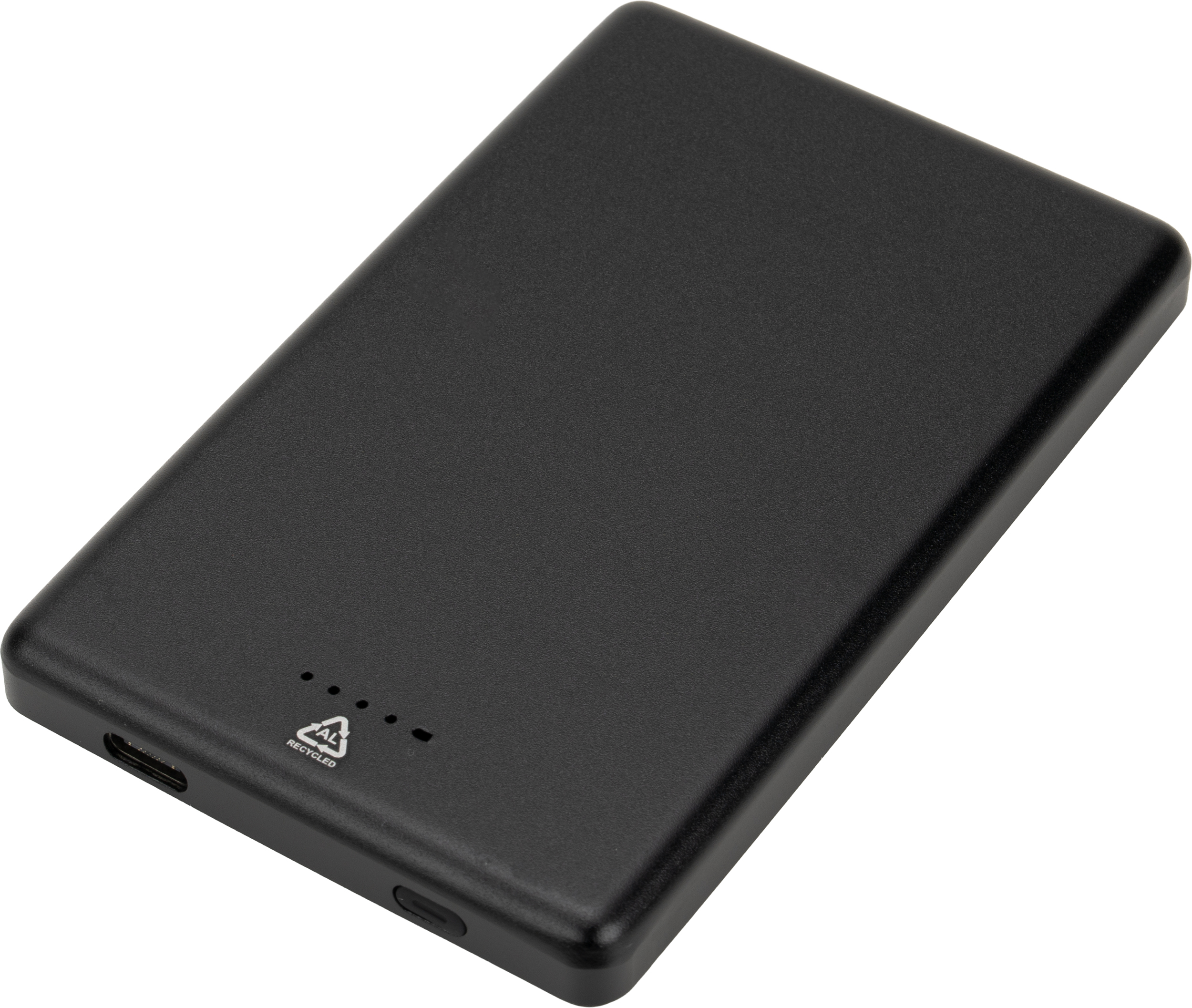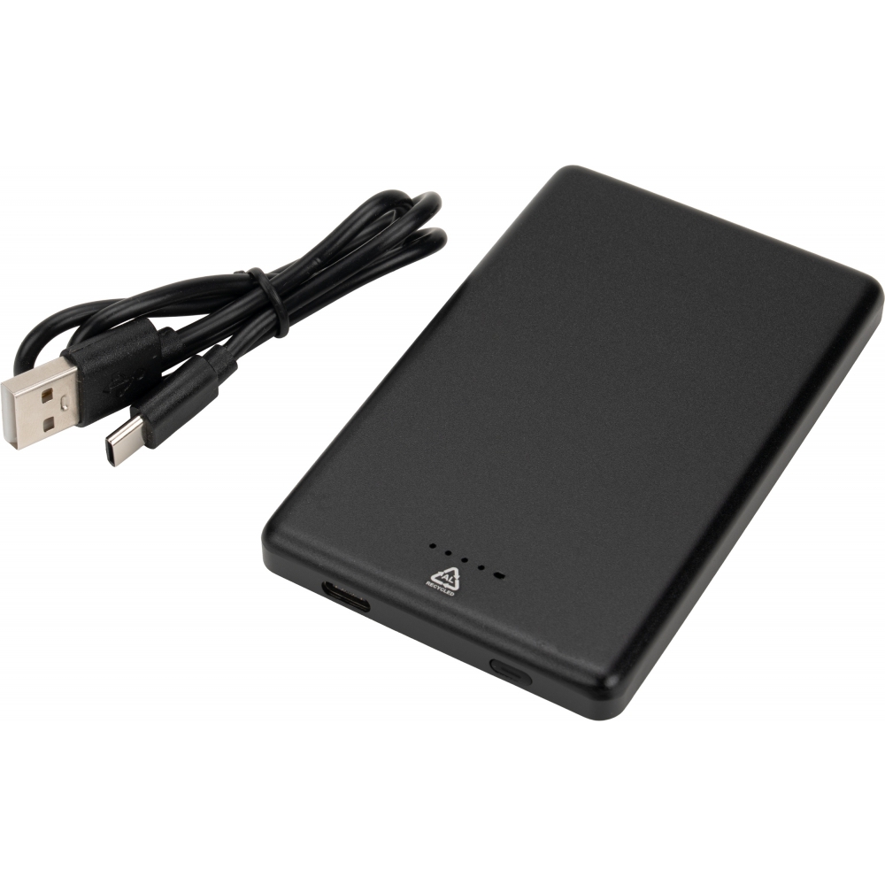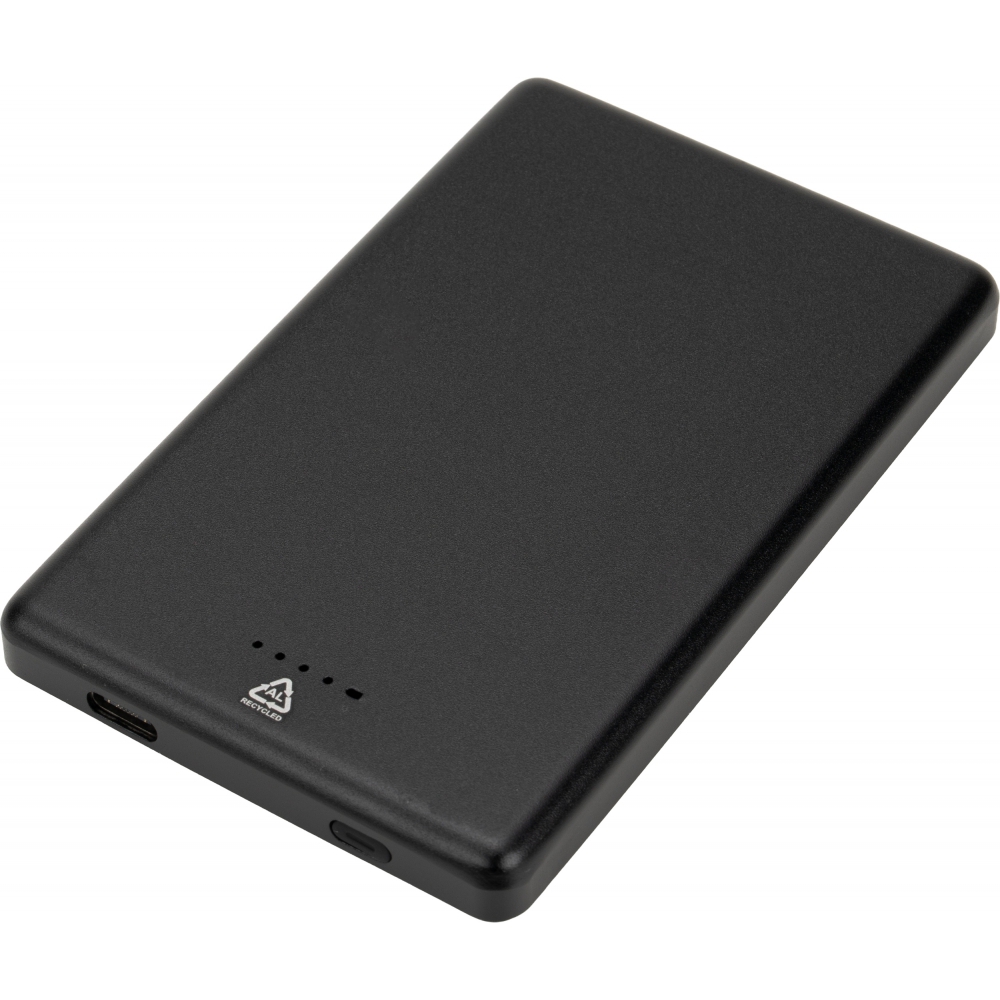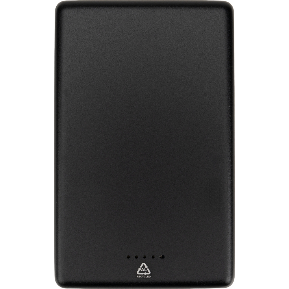Power bank o pojemności 5 000 mAh, wykonany z aluminium pochodzącego z recyklingu to praktyczne rozwiązanie do codziennego ładowania urządzeń. Posiada funkcję ładowania indukcyjnego o mocy 10 W, która jest kompatybilna ze smartfonami z technologią Qi oraz z iPhone’ami.