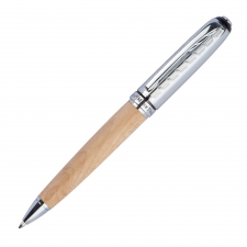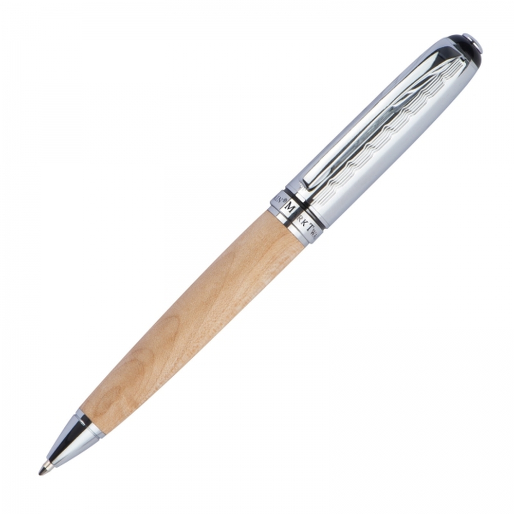 Oba akcesoria piśmiennicze posiadają korpus wykonany z naturalnego, surowego drewna. Dzięki temu, że zostało ono idealnie wypolerowane, długopis oraz pióro są bardzo przyjemne w użytkowaniu. Oba te akcesoria piśmiennicze Mark Twain z logo są nieco cięższe od standardowych, plastikowych długopisów, przez co dają niepowtarzalne wrażenie luksusu, podczas codziennego sporządzania notatek czy podpisywania dokumentów.