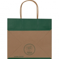 Mała torba wykonana z papieru pochodzącego z recyklingu, o gramaturze 120g/m², posiada dwa mocne uchwyty.