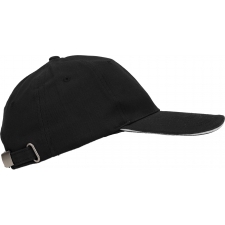 Bawełniana, 6-panelowa czapka z daszkiem typu Sandwich, wykonana z bawełny czesanej wolnej od AZO (gramatura 260 g/m²), regulowana za pomocą metalowego zapięcia.