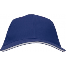 Bawełniana, 6-panelowa czapka z daszkiem typu Sandwich, wykonana z bawełny czesanej wolnej od AZO (gramatura 260 g/m²), regulowana za pomocą metalowego zapięcia.