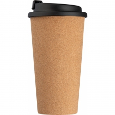Kubek z plastiku o podwójnych ściankach w korkowej obudowie, posiada zamykany ustnik, pojemność 400 ml.