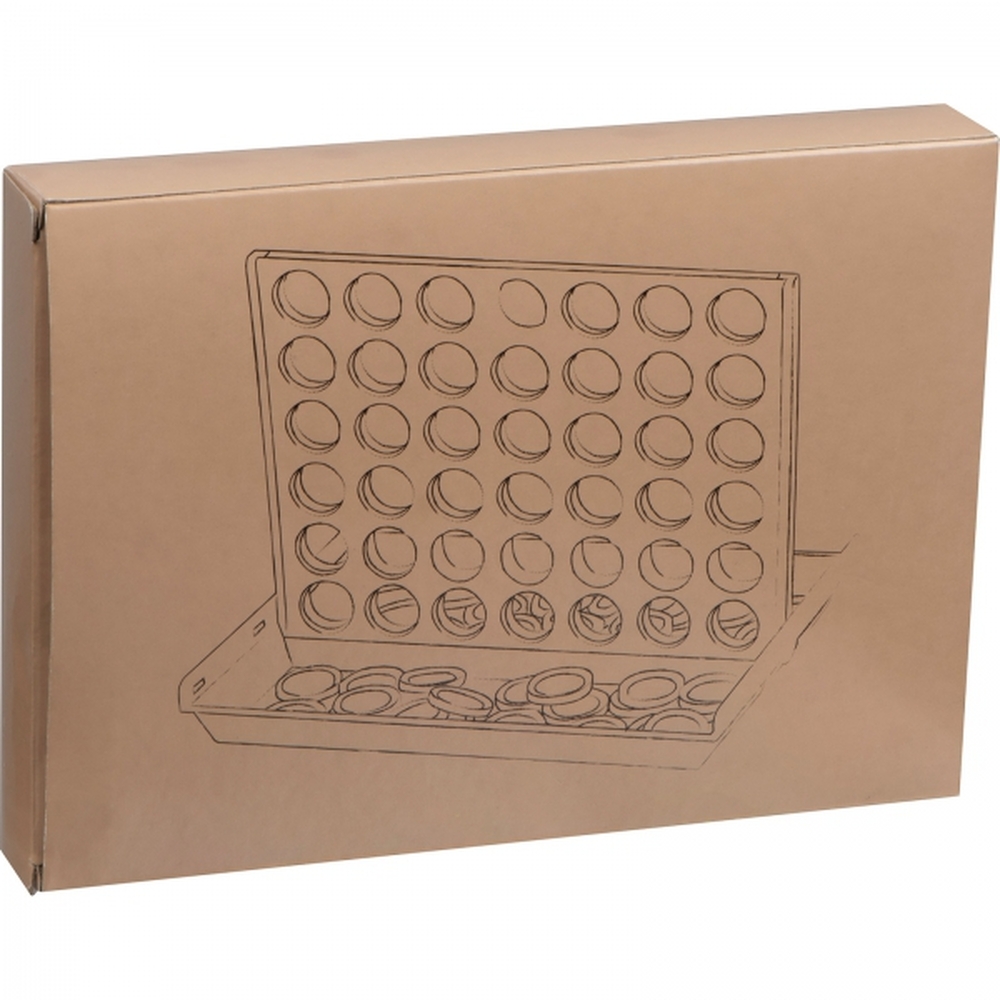 Wykonana z plastiku (PS) gra 4 w rzędzie z żetonami w dwóch kolorach i składaną planszą, co świetnie sprawdzi się np. w podróży.