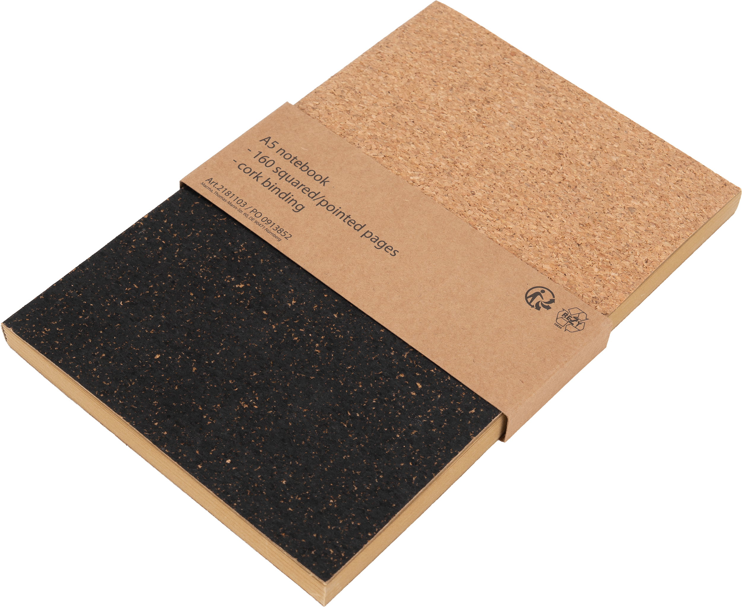 Notes o formacie A5 ze 160 stronami w kropki i okładką do połowy wykonaną z korka.