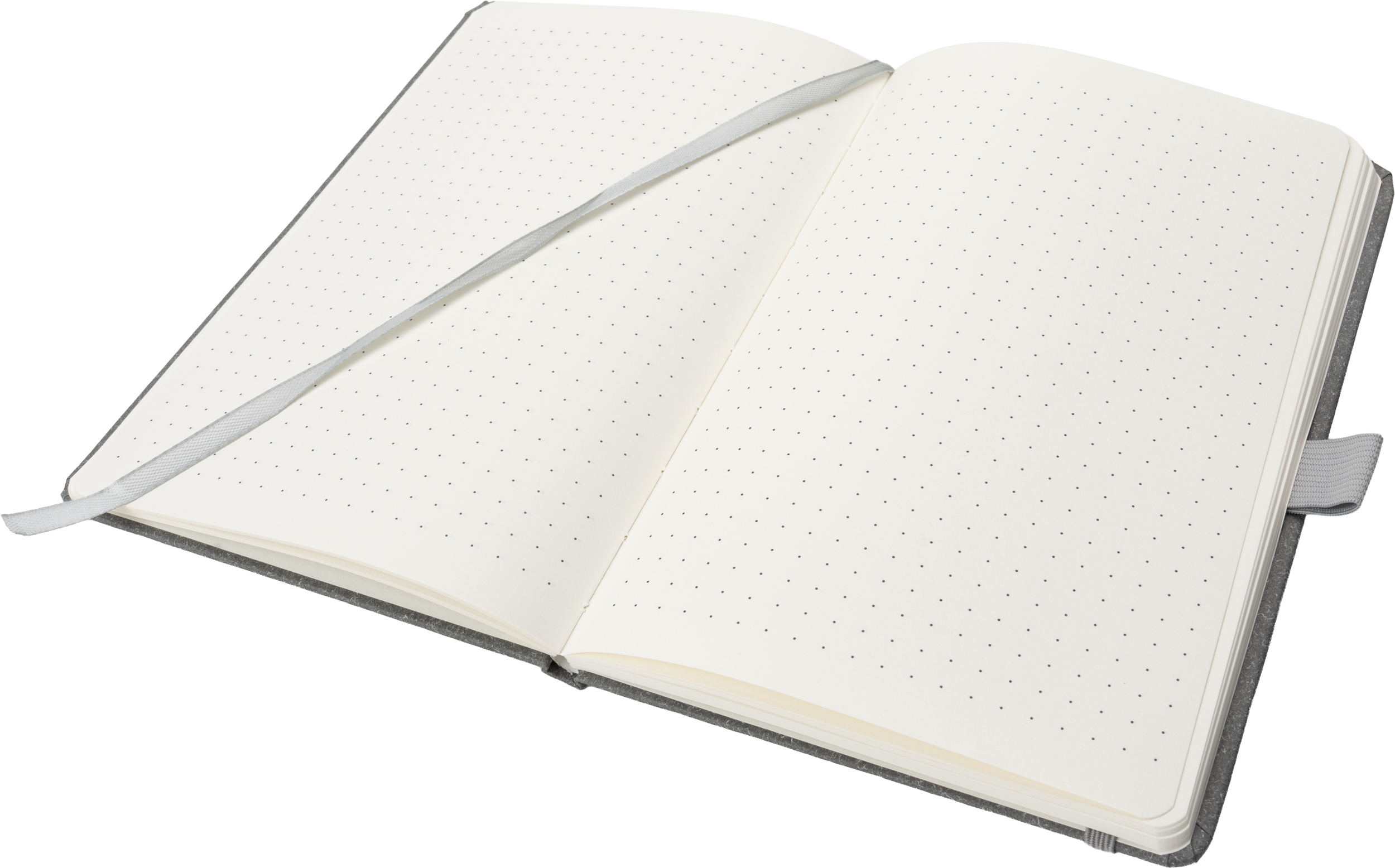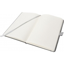 Notes o formacie A5 z zakładką i 160 stronami w kropki, zamykany na gumkę. Zarówno tekturowa okładka, jak i kartki są wykonane z papieru pochodzącego z recyklingu.