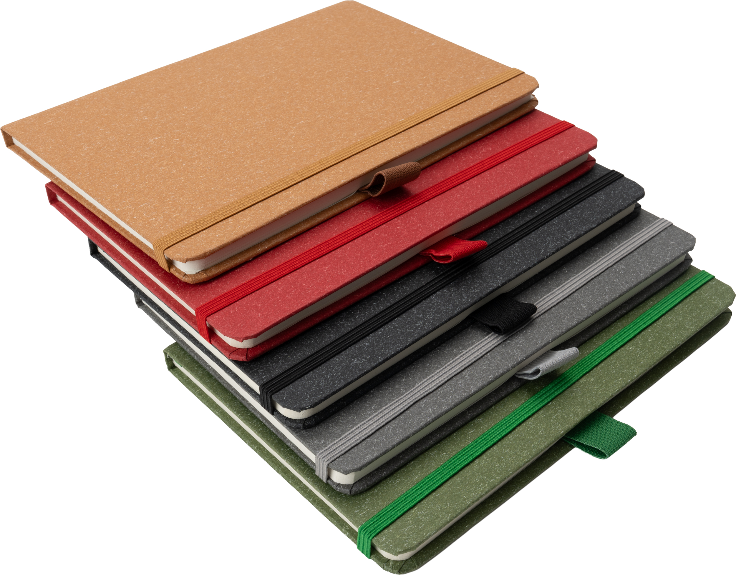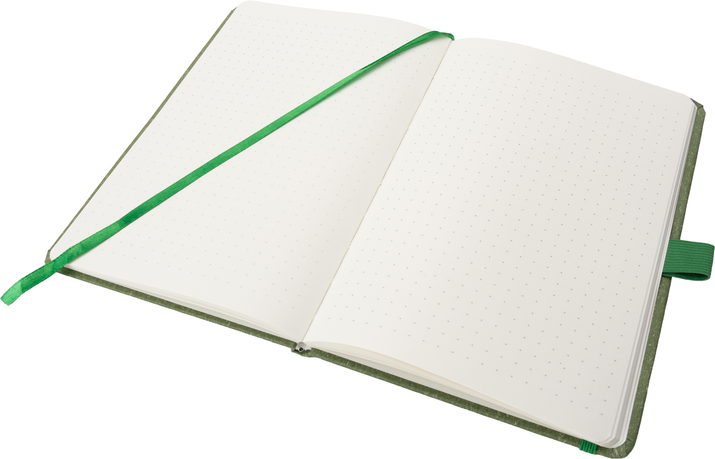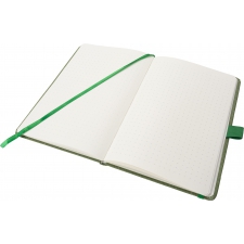 Notes o formacie A5 z zakładką i 160 stronami w kropki, zamykany na gumkę. Zarówno tekturowa okładka, jak i kartki są wykonane z papieru pochodzącego z recyklingu.
