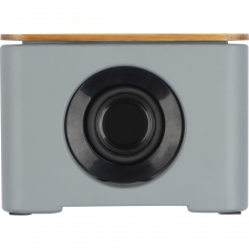 Głośnik Bluetooth z cementu wapiennego. W bambusowej części znajduje się zintegrowana ładowarka indukcyjna.