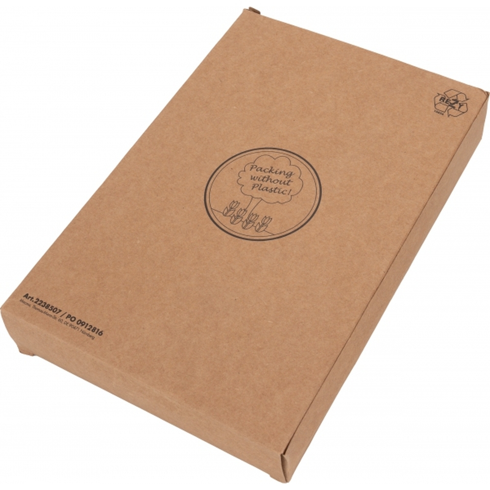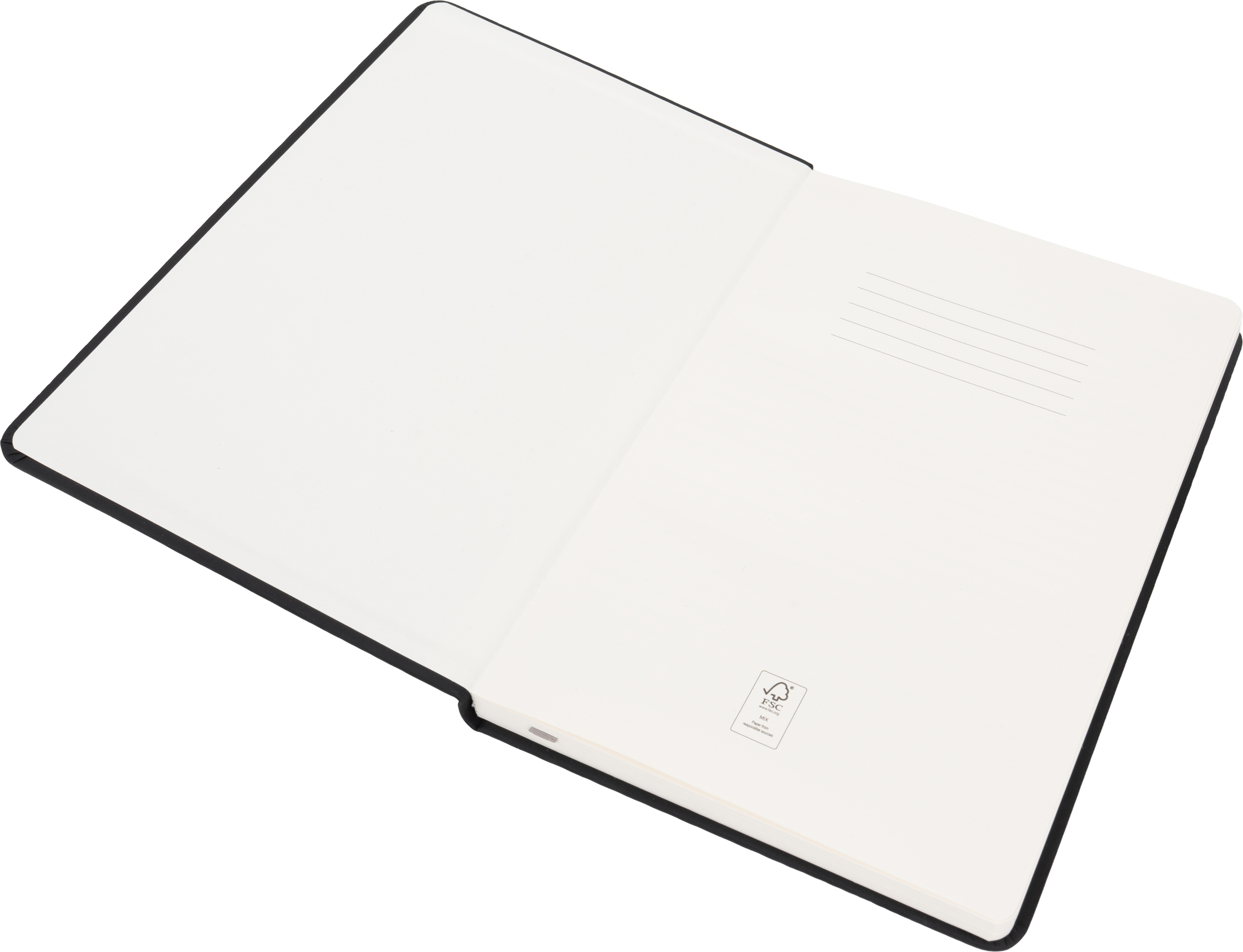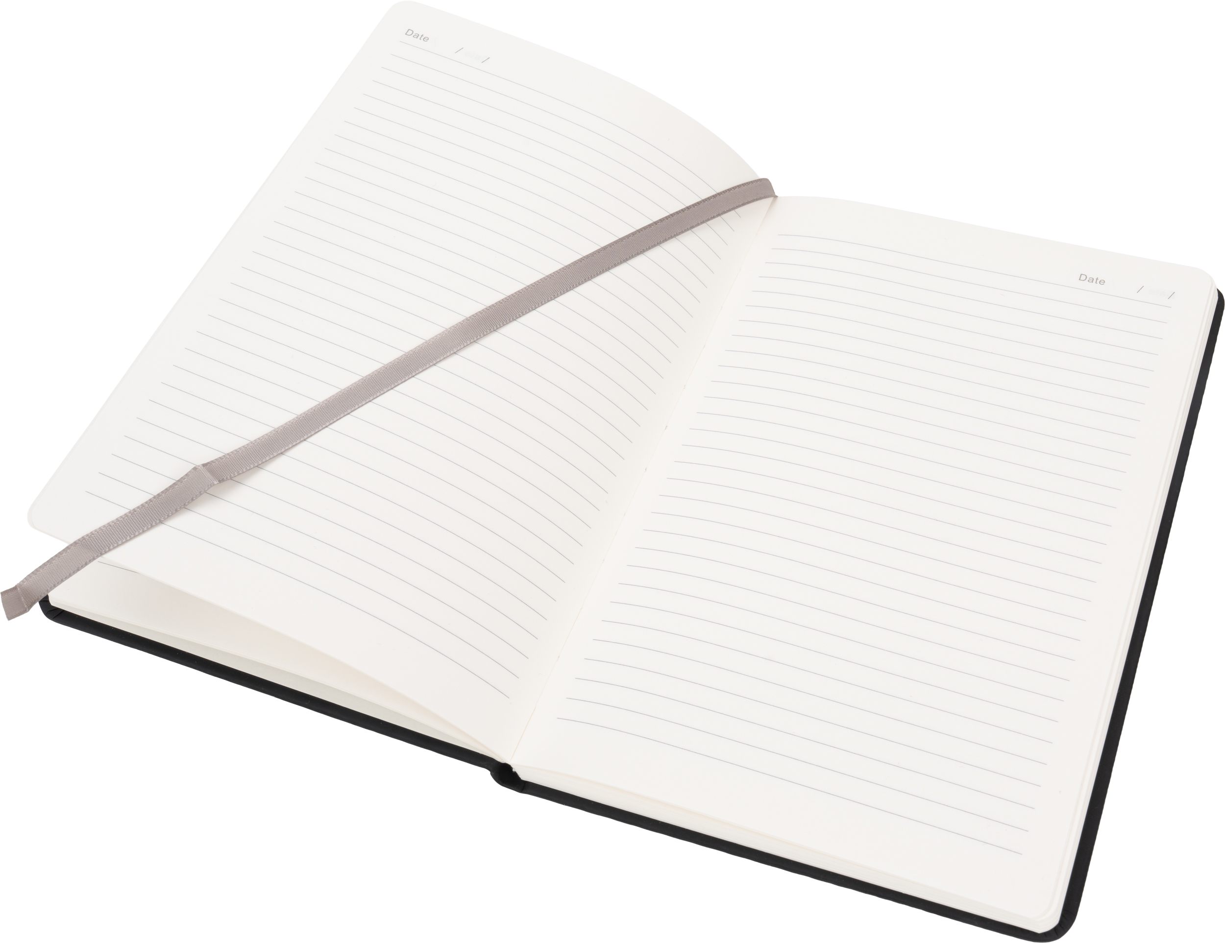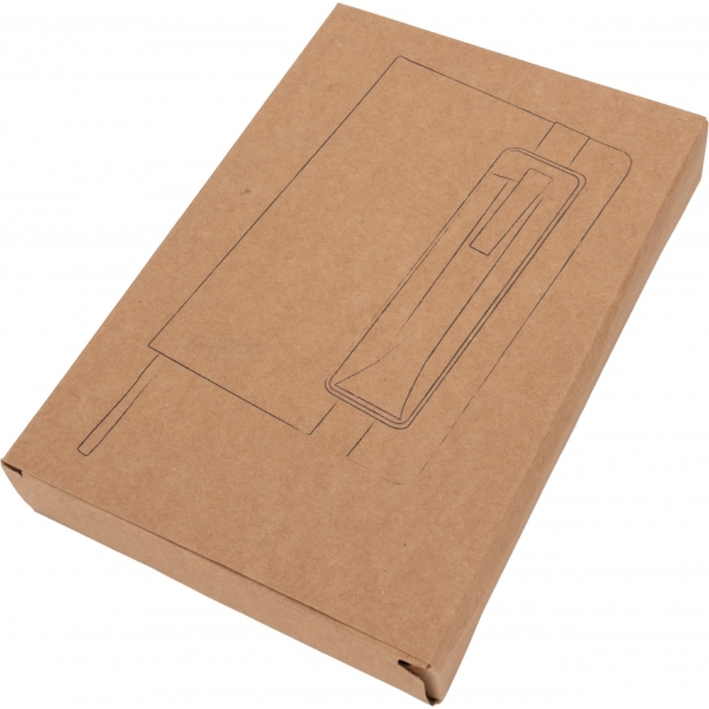 A5 notebook with a PU cover and 192 lined pages, a bookmark and an elastic band to close the notebook, with a pen holder included with the notebook - a pen made of ABS, writing in blue.