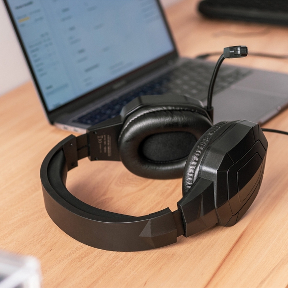 Mikrofon jest precyzyjnie dopasowany do słuchawek, co zapewnia komfort użytkowania i pełną swobodę ruchów podczas rozmów.Zestaw słuchawkowy wyposażony jest w funkcję redukcji szumów, która skutecznie eliminuje niepożądane dźwięki tła, zapewniając wyraźniejszy i bardziej precyzyjny dźwięk. Dzięki tej technologii, nawet w hałaśliwym otoczeniu, możesz skupić się na rozmowie, muzyce czy grze bez zakłóceń.Dodatkowo, słuchawki posiadają regulację głośności, co umożliwia precyzyjne dostosowanie poziomu dźwięku do własnych preferencji. Intuicyjny system regulacji pozwala na szybkie i wygodne dostosowanie głośności, bez konieczności przerywania rozmowy czy gry.Słuchawki charakteryzują się ergonomicznym kształtem, który zapewnia komfort nawet przy długotrwałym użytkowaniu.