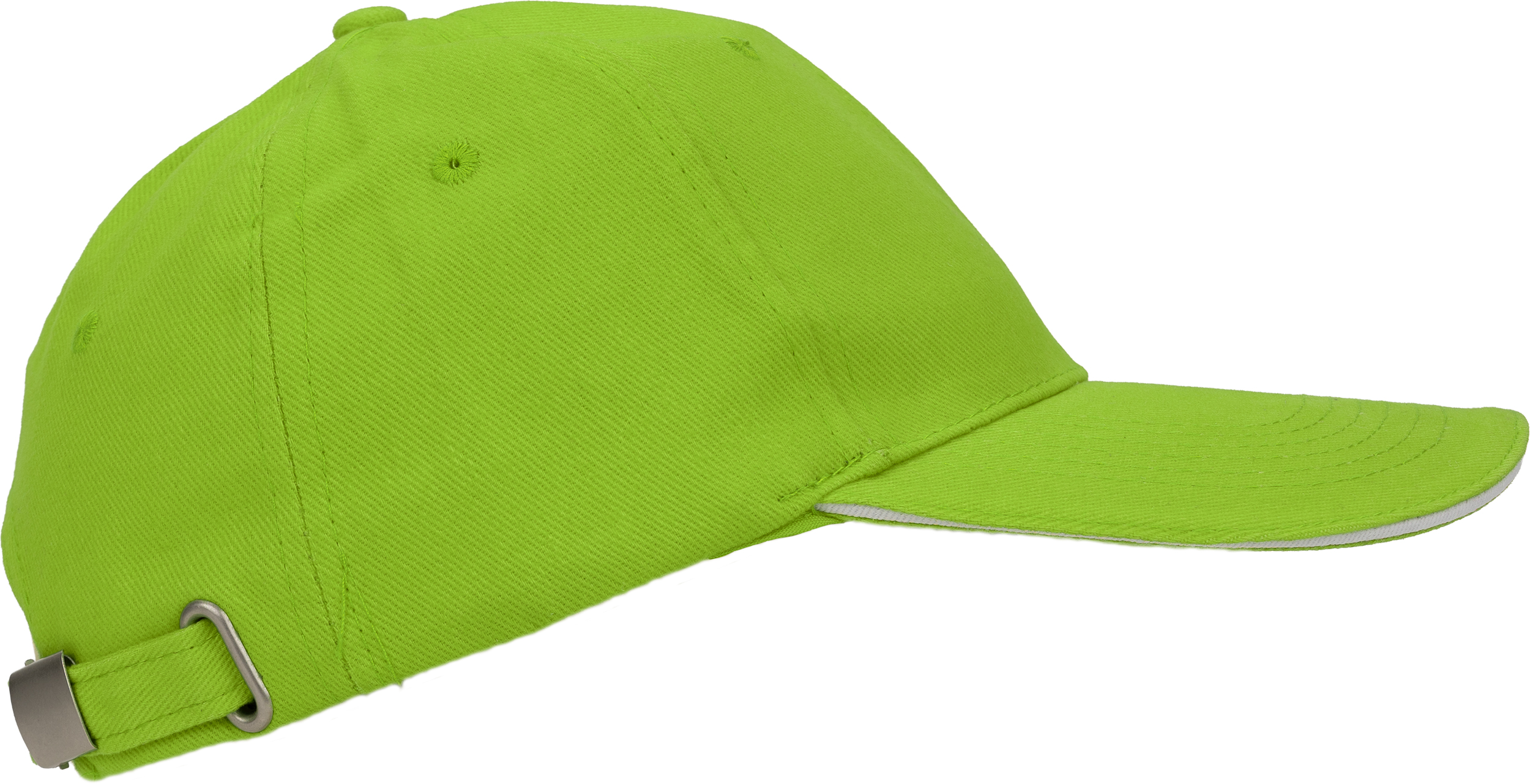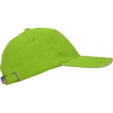 Bawełniana, 6-panelowa czapka z daszkiem typu Sandwich, wykonana z bawełny czesanej wolnej od AZO (gramatura 260 g/m²), regulowana za pomocą metalowego zapięcia.