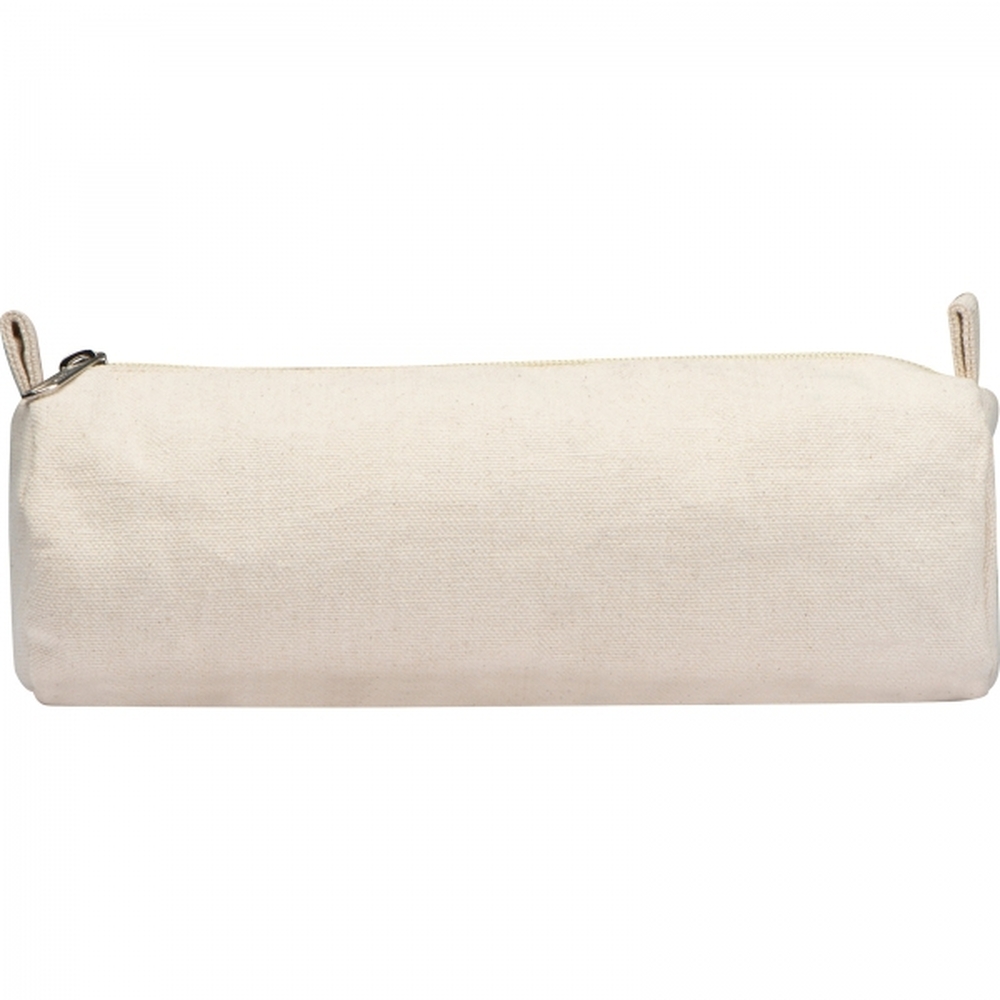 Pojemny piórnik wykonany z bawełny, zamykany na zamek błyskawiczny.