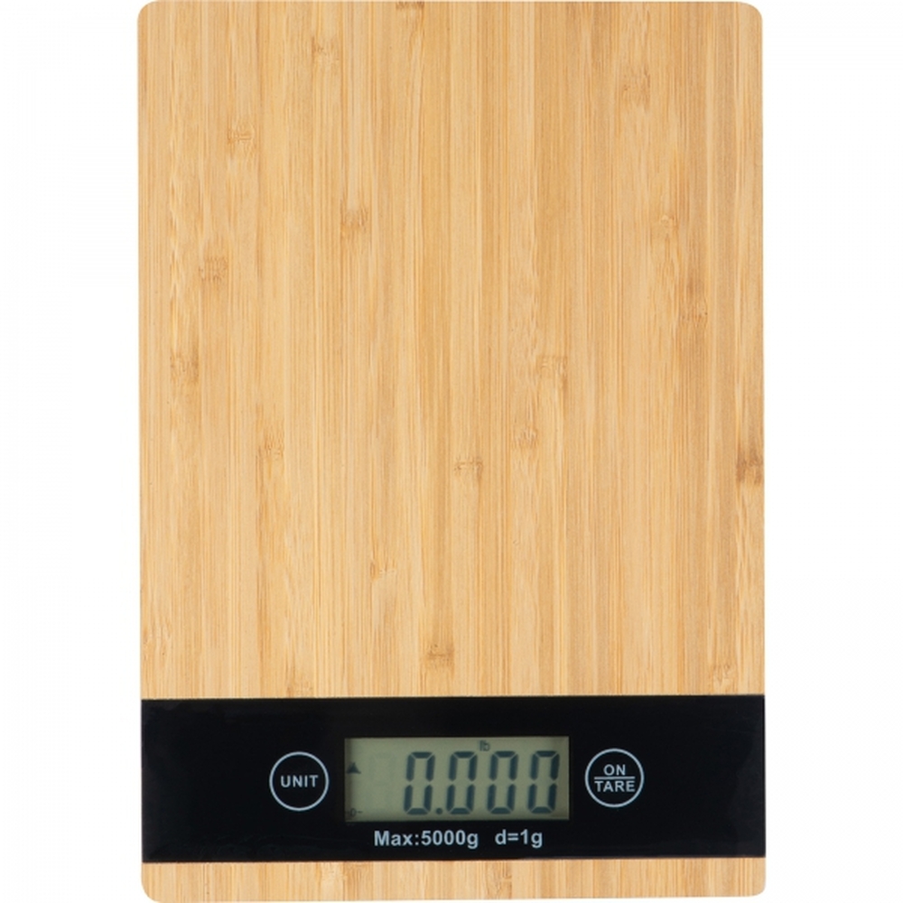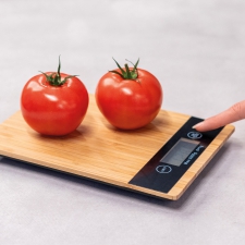 Waga kuchenna wykonana z bambusa z cyfrowym wyświetlaczem. Pomiary mogą być wyświetlane w kg / g / oz / ml z precyzją do 1g.