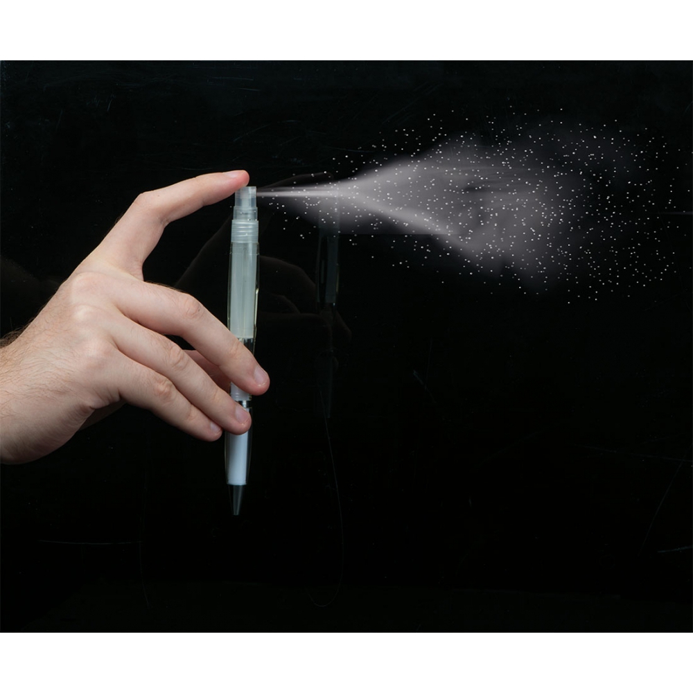 Długopis plastikowy z rozpylaczem to praktyczne i nowoczesne rozwiązanie, które łączy funkcję pisania z możliwością wygodnego rozpylania płynów dezynfekujących lub perfum. Wyposażony w przekręcany mechanizm oraz niebieski wkład, zapewnia płynne pisanie i wygodę użytkowania.Dodatkowo, wbudowany atomizer umożliwia łatwe i szybkie użycie płynów dezynfekujących lub zapachowych, co czyni ten długopis idealnym do biura, szkoły czy podróży. Kompaktowy design sprawia, że jest wygodny do przenoszenia, a połączenie funkcji piśmienniczej i higienicznej czyni go wyjątkowym akcesorium w codziennym użytkowaniu.
