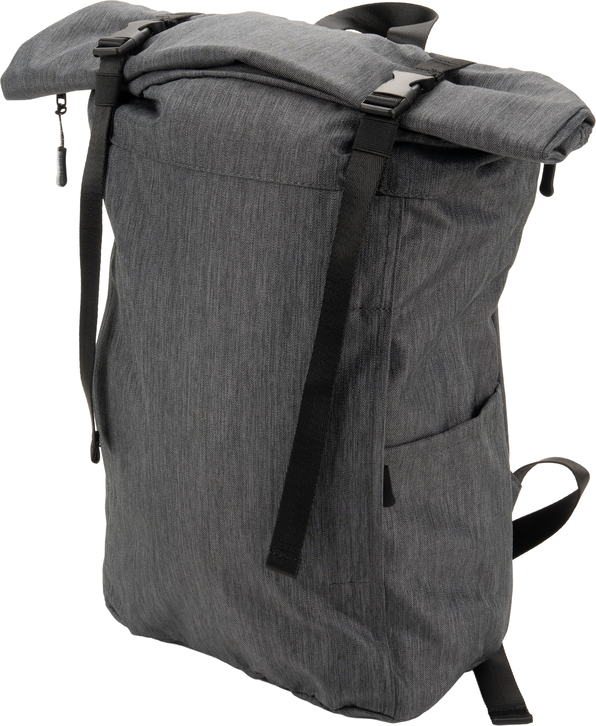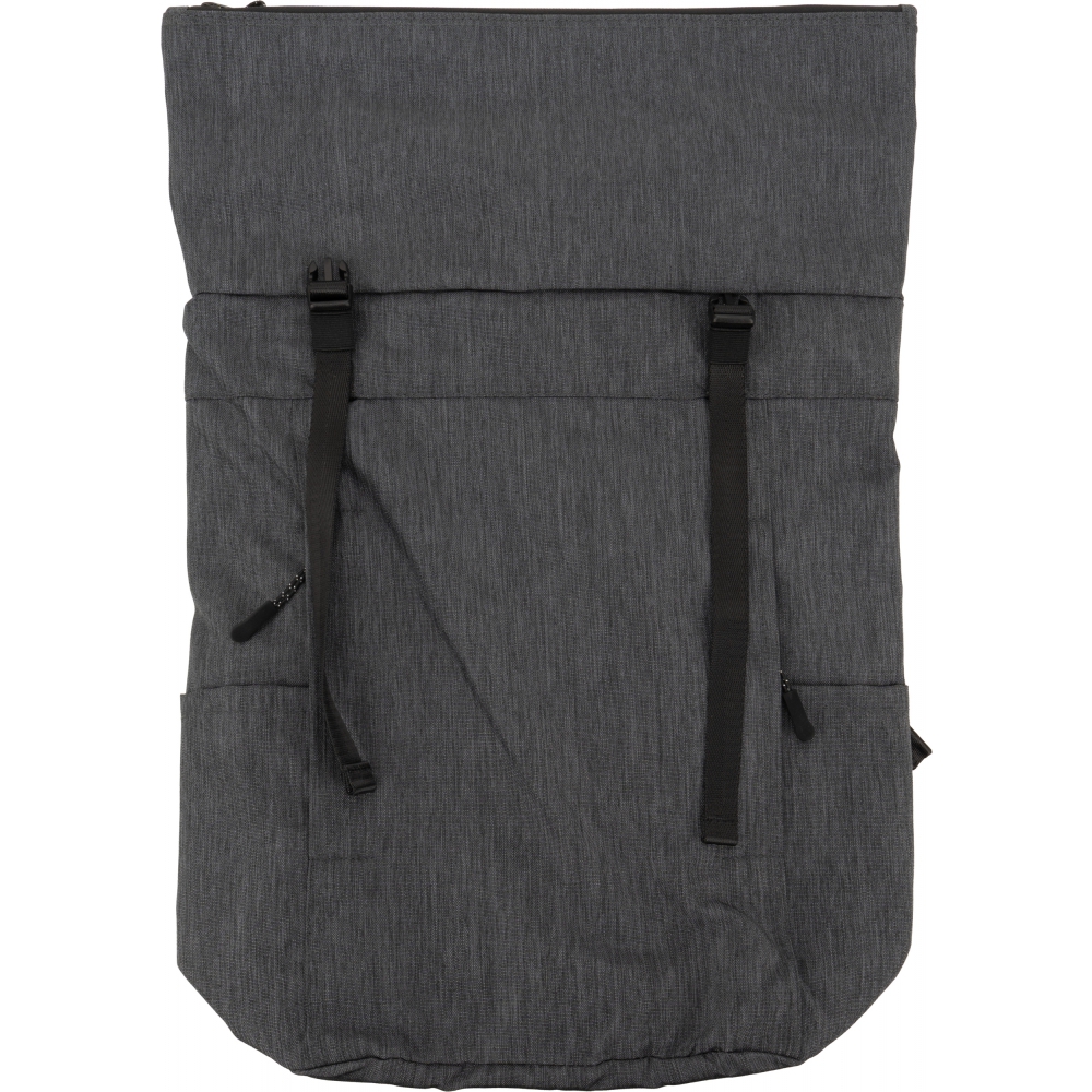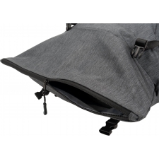 Plecak ze zwijanym zamknięciem, wyposażony w dwie frontowe kieszenie zapinane na zamek, dwie boczne kieszonki, zamek z tyłu zapewniający dostęp do dużej komory głównej, która została wydzielona na jedną dużą kieszeń oraz jedną małą - na akcesoria. Po zrolowaniu górnej części plecaka całość zamykamy dwoma paskami z plastikowymi klamerkami. Plecak posiada watowane szelki i plecy.