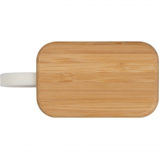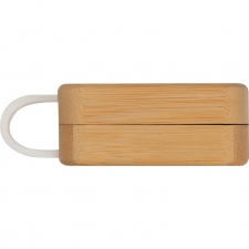 Bezprzewodowe słuchawki douszne z Bluetooth 5.0. Bambusowe etui jest jednocześnie stacją ładującą USB. Zasięg do 10 metrów, czas ładowania ok. 1 godziny, czas pracy 2-3 godziny i bateria 300 mAh.