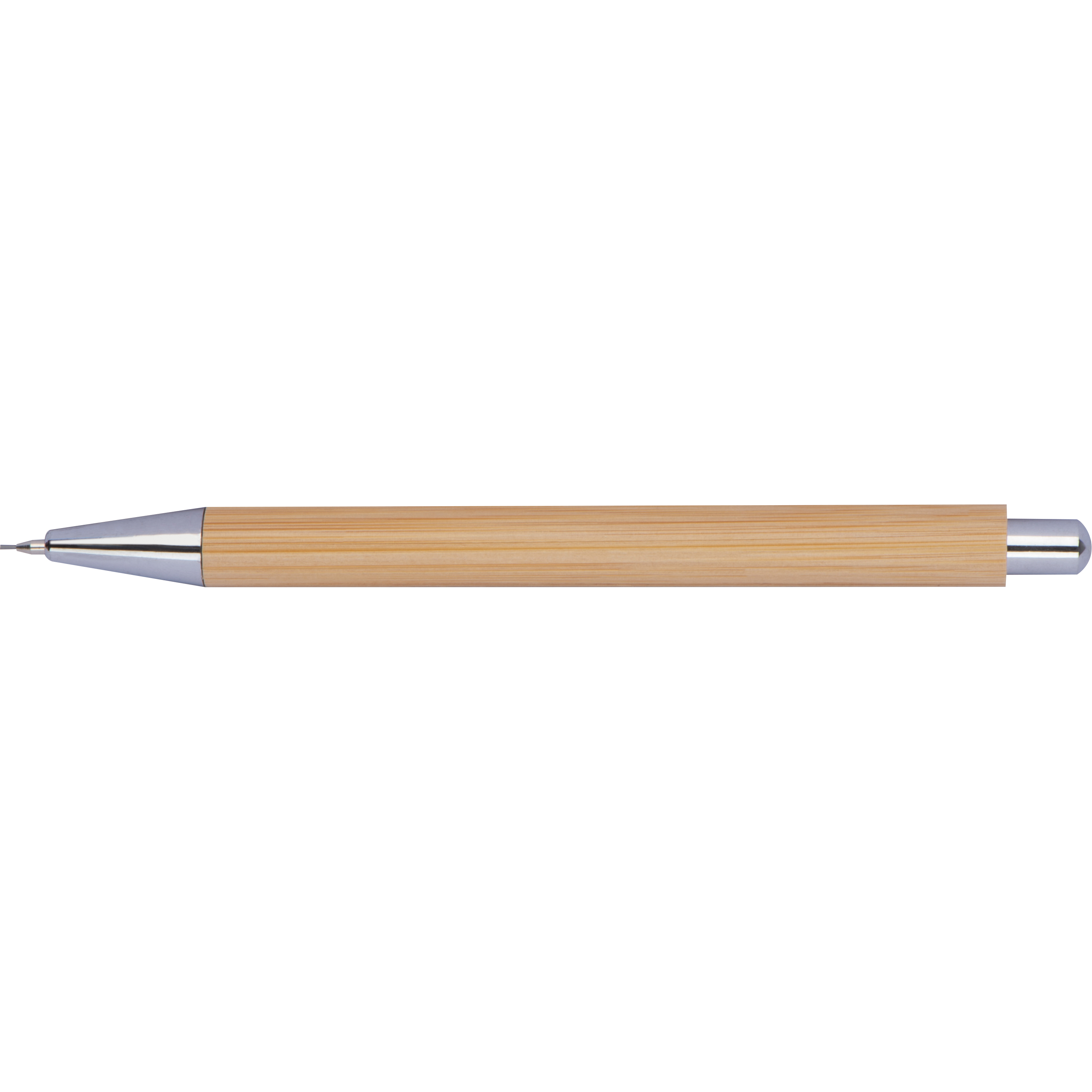 Zestaw z bambusa i metalu. W skład zestawu wchodzą: długopis z niebieskim wkładem oraz ołówek automatyczny. Zestaw dostarczany jest w ekologicznym kartonowym pudełku.