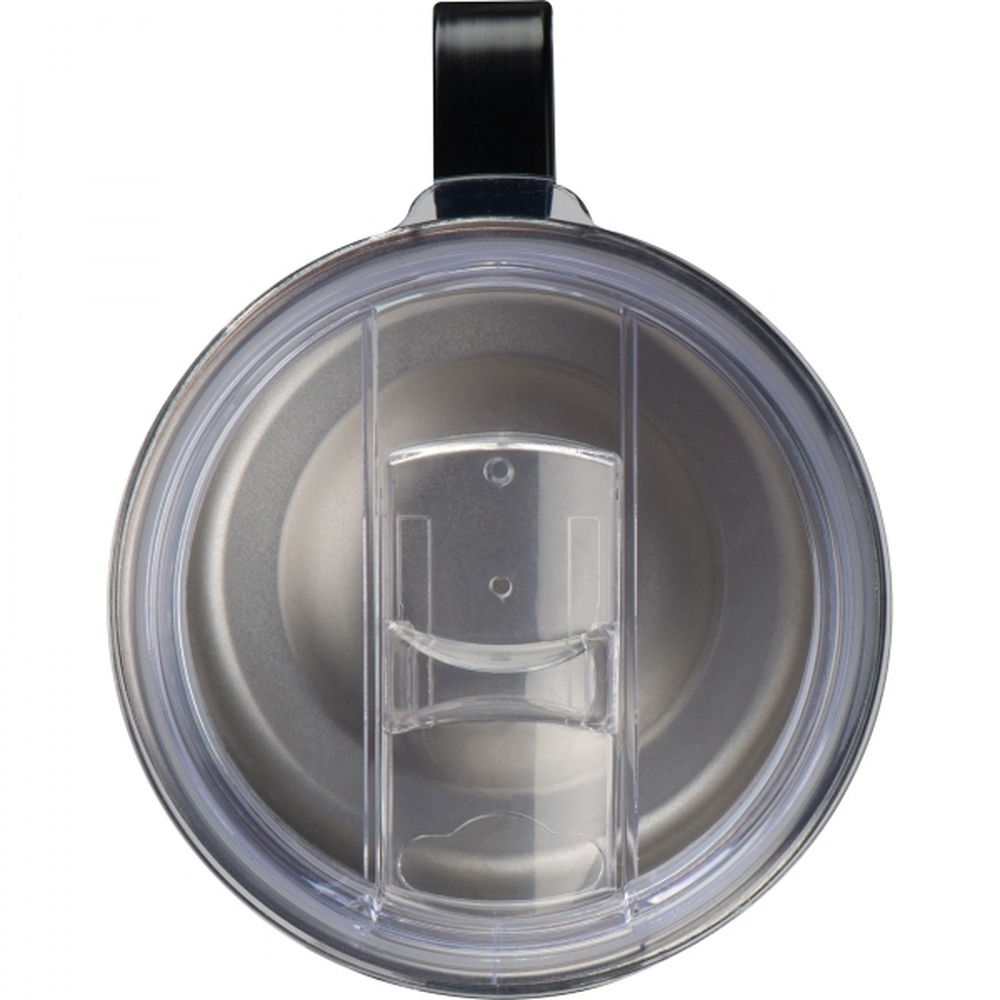 Kubek o podwójnych ściankach (izolacja próżniowa) ze stali nierdzewnej, z plastikową pokrywką. Pojemność 300ml.