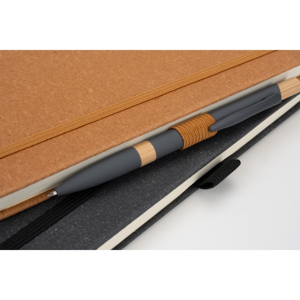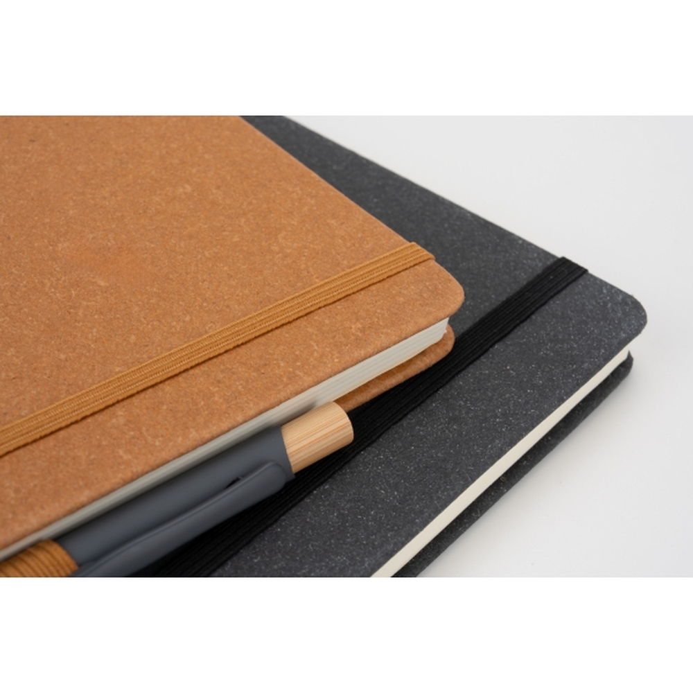 Dzięki elastycznej gumce do zamykania wszystkie zapiski pozostają zabezpieczone, a pętelka na długopis pozwala mieć go zawsze pod ręką, co zwiększa komfort użytkowania.Jego kompaktowy format sprawia, że z łatwością zmieści się w torbie czy plecaku, a minimalistyczny design i ekologiczne materiały nadają mu nowoczesnego charakteru. To idealny wybór dla osób poszukujących praktycznego i stylowego notesu, który łączy w sobie funkcjonalność oraz ekologię.