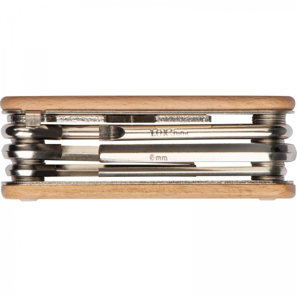 Drewniana konstrukcja zapewnia solidność i trwałość, a jednocześnie nadaje narzędziom charakterystyczny, naturalny wygląd.Zestaw narzędzi rowerowych w drewnianej obudowie to niezawodne rozwiązanie, które pozwoli Ci naprawić drobne usterki, które mogą pojawić się w trakcie jazdy, takie jak problemy z łańcuchem, oponą czy innymi elementami roweru. Dzięki temu przyrządowi masz pewność, że żadna awaria nie zrujnuje Twojej wyprawy.Nie zapomnij zabrać tego narzędzia na każdą rowerową wyprawę. Jego kompaktowy rozmiar i ekologiczna konstrukcja sprawiają, że jest to doskonały wybór dla rowerzystów poszukujących praktycznego, przyjaznego środowisku rozwiązania, które jednocześnie charakteryzuje się estetyką i solidnością.