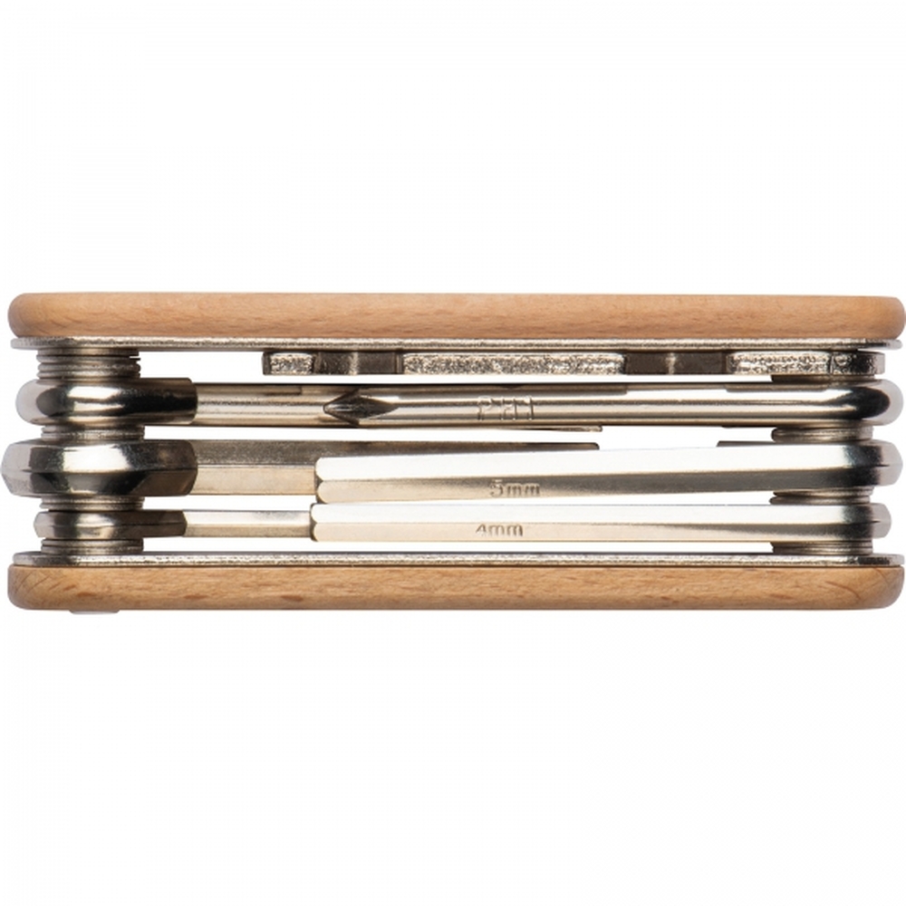 Przyrząd do roweru w drewnianej obudowie. Poręczne narzędzie, którego nie możesz zapomnieć podczas wyprawy rowerowej.