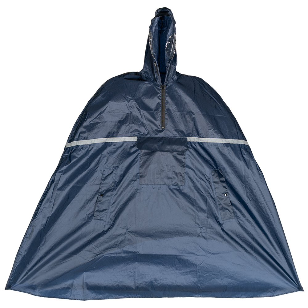 Składany, dwukolorowy płaszcz przeciwdeszczowy. Płaszcz posiada kaptur ze ściągaczami i odblaskowe elementy. Łatwo składa się do niewielkich rozmiarów, dzięki czemu możemy zabrać go ze sobą wszędzie.