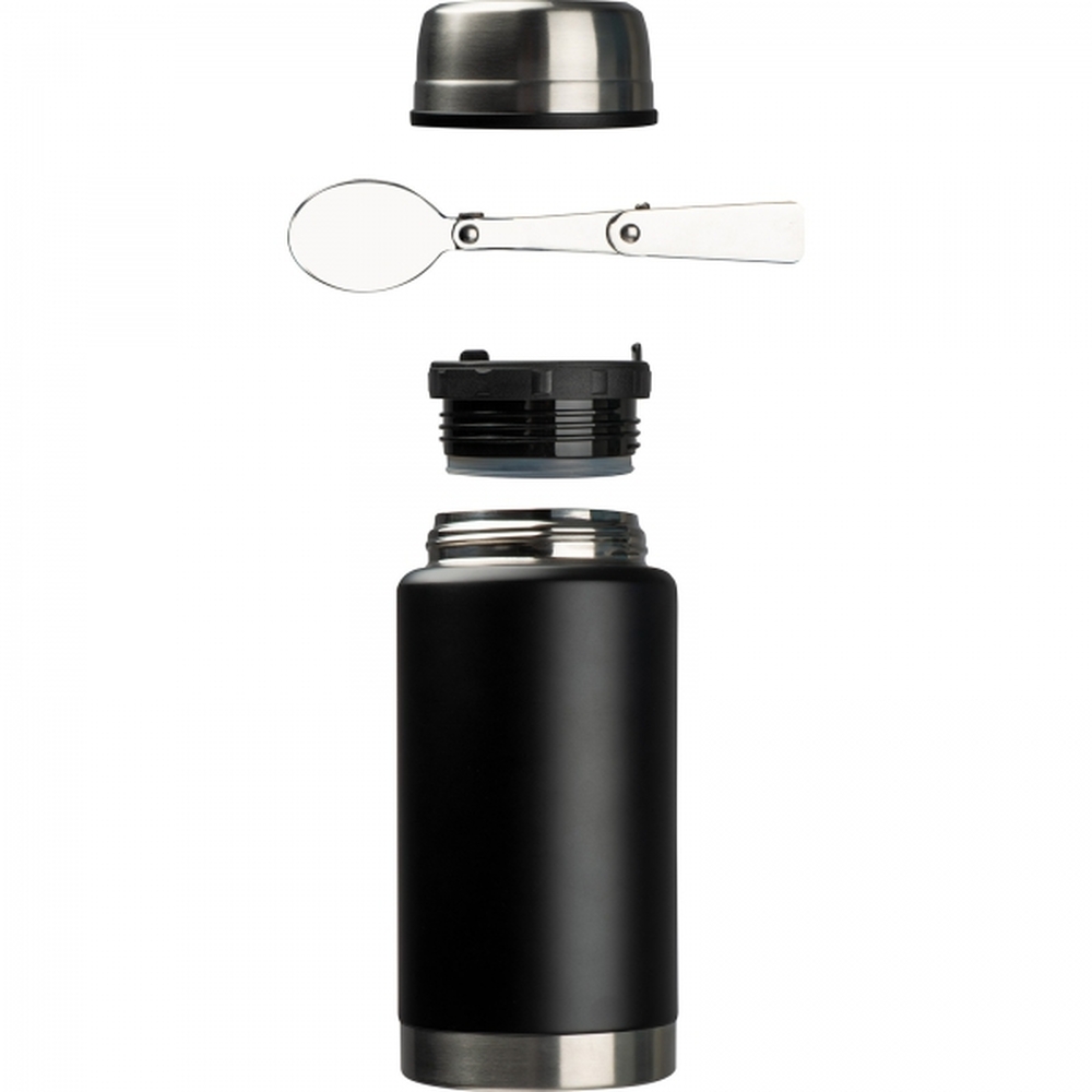 Solidny pojemnik na żywność, wykonany ze stali nierdzewnej o podwójnych ściankach, o pojemności 750 ml. W wieczku została ukryta składana łyżeczka. Pojemnik utrzymuje gorącą temperaturę do 16h, zimno do 20h.