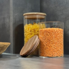 Transparentne szkło pozwala na łatwą kontrolę ilości przechowywanych produktów, bez konieczności otwierania słoika.Jego kompaktowy rozmiar sprawia, że doskonale sprawdzi się do przechowywania kawy, herbaty, cukru, orzechów czy przypraw, pomagając w utrzymaniu porządku w kuchni. To funkcjonalne i estetyczne rozwiązanie, które łączy minimalistyczny design z dbałością o środowisko.
