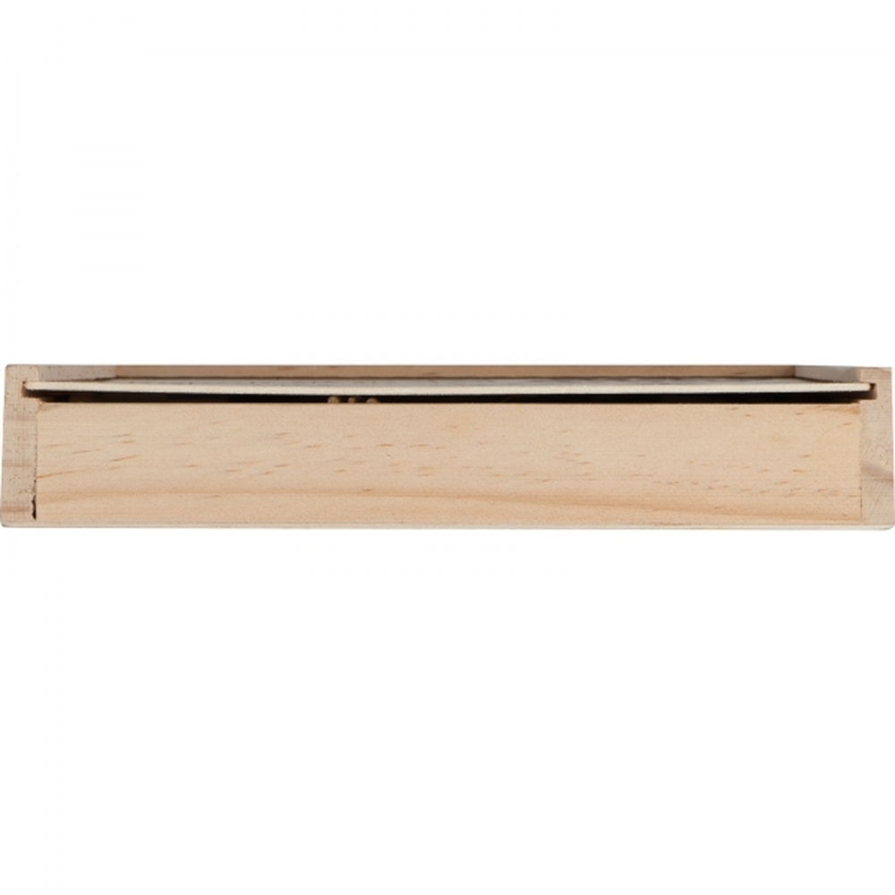 Drewniane pudełko skrywające wewnątrz 4 różne gry - szachy, warcaby, mikado oraz domino.