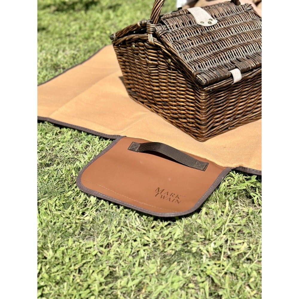 Składany koc piknikowy marki Mark Twain, z wygodnym uchwytem do przenoszenia. Wymiar koca to 120 x 150 cm.