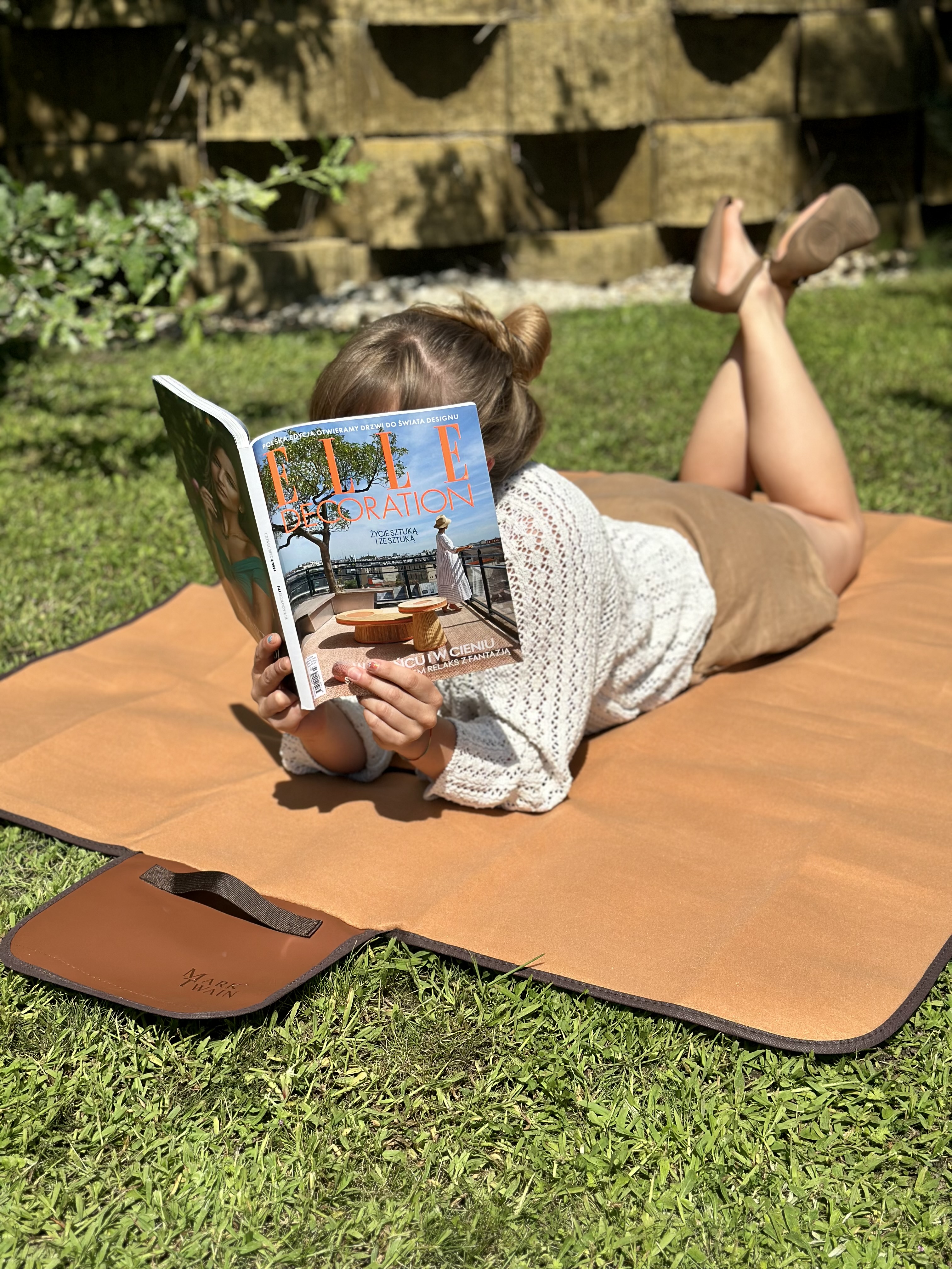 Pokrywa koca wykonana jest z kolei z ekoskórki, która dodaje mu eleganckiego wyglądu, a tłoczenie z logotypem Mark Twain podkreśla jego prestiżowy charakter. Dodatkowo, koc posiada wygodny uchwyt do przenoszenia, co ułatwia jego transport i przechowywanie. Klasyczny wygląd oraz wysokiej jakości materiały sprawiają, że koc piknikowy Mark Twain jest doskonałym wyborem zarówno na pikniki, jak i na relaksujące chwile w ogrodzie.Cechy ogólne:Gramatura: 150 g/m2.