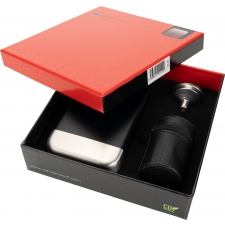 Dzięki temu zestaw jest nie tylko funkcjonalny, ale także estetycznie wykonany, co sprawia, że idealnie nadaje się na prezent lub jako akcesorium na specjalne okazje.Dodatkowo, zestaw zawiera lejek, który ułatwia napełnianie piersiówki bez ryzyka rozlania. Całość zapakowana jest w eleganckie opakowanie, co sprawia, że jest to doskonały wybór dla osób, które cenią sobie wysoką jakość wykonania i wygodę użytkowania.Ten wyjątkowy zestaw to niezbędnik każdego pasjonata podróży, pikników czy spotkań towarzyskich, który zapewnia komfort przy spożywaniu ulubionych napojów.