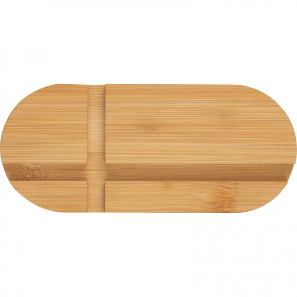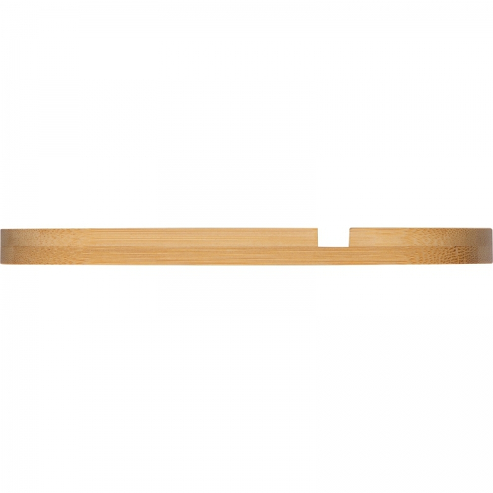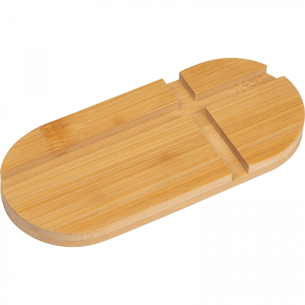 Podkładka wykonana z drewna bambusowego, dwa rozmiary wycięć pozwalają na umieszczenie na niej zarówno telefonu jak i tableta.