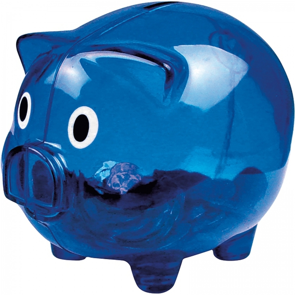 Zabawna świnka - skarbonka wykonana z transparentnego plastiku.